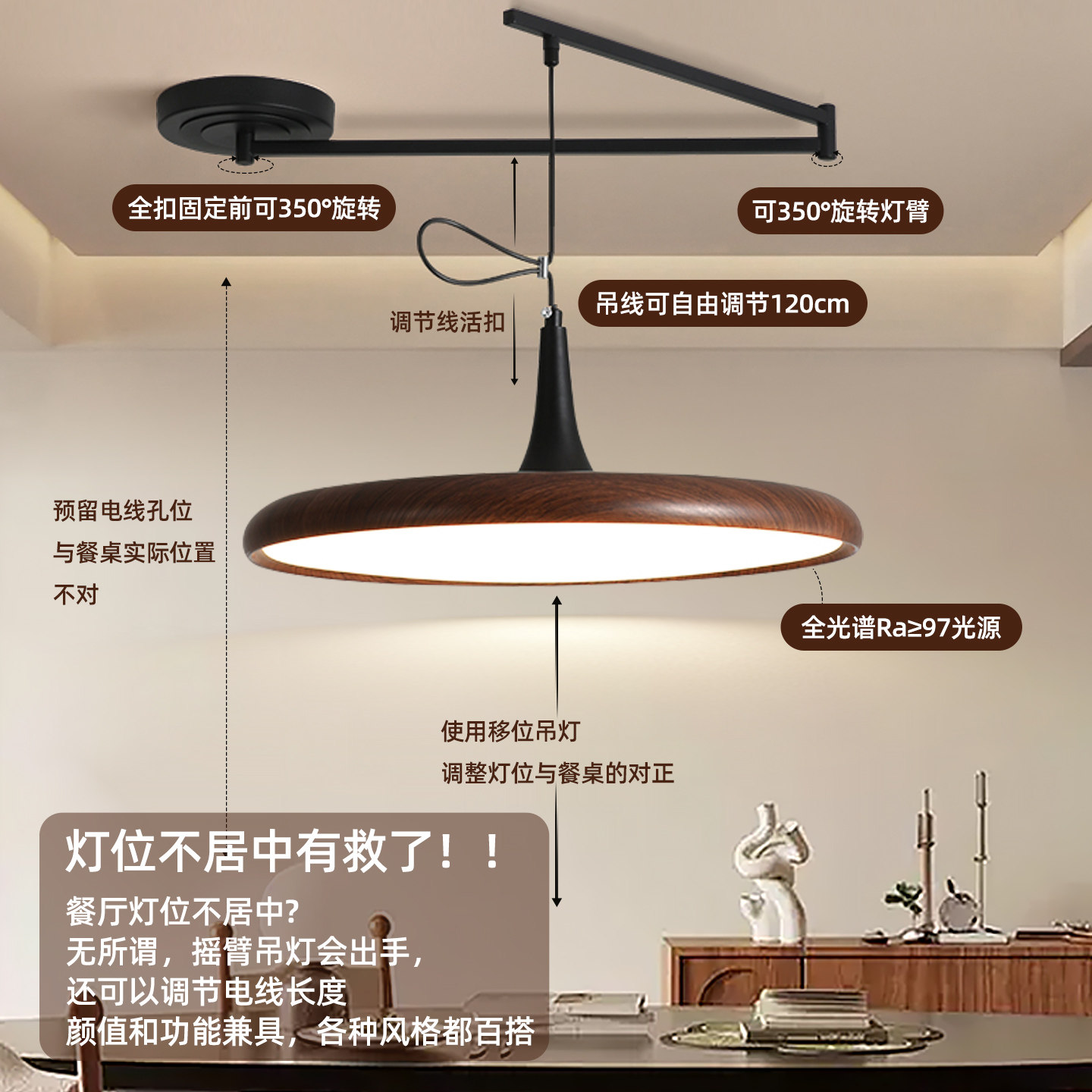 天猫全光谱护眼法式中古奶油风飞碟餐厅吊灯摇臂可移位餐桌主灯