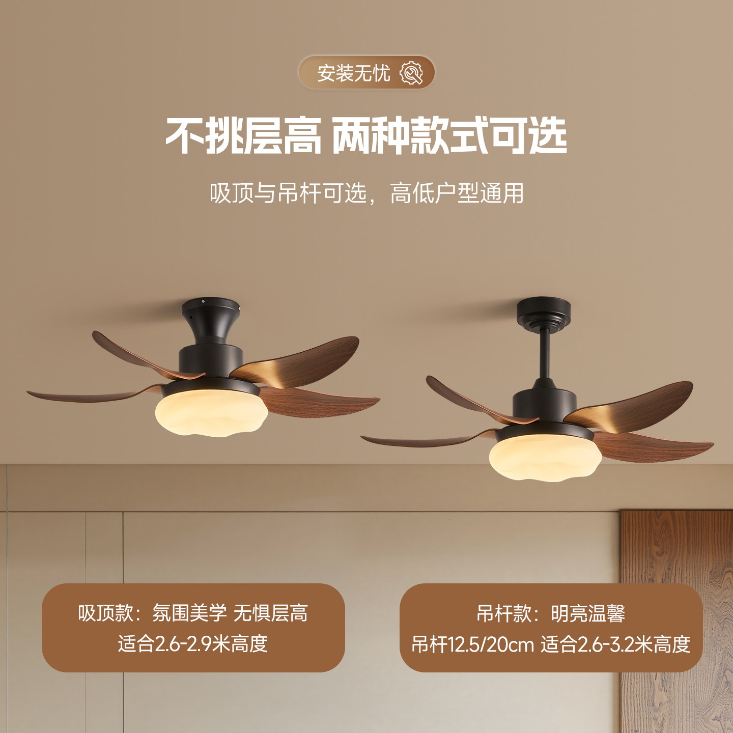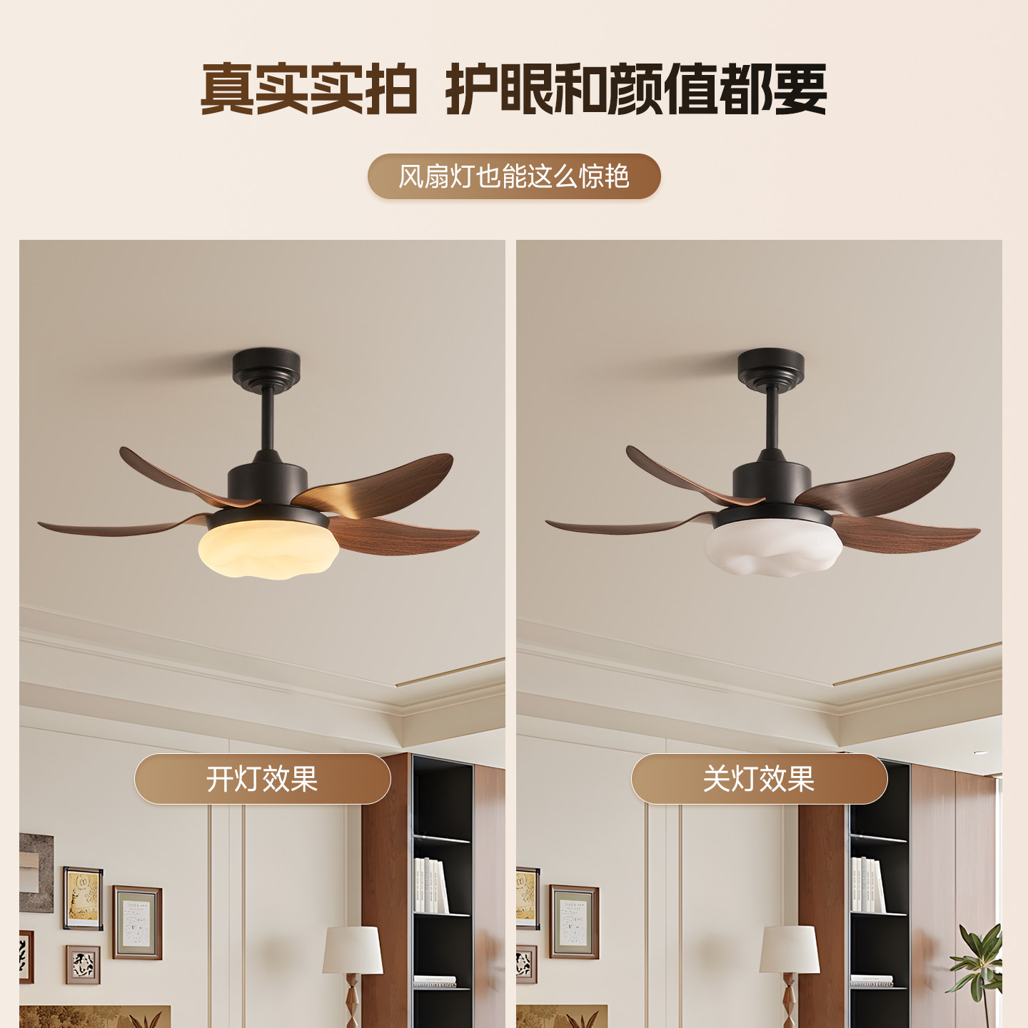 卧室风扇灯吸顶护眼静音简约书房餐厅家用小风扇吊灯中古风新中式
