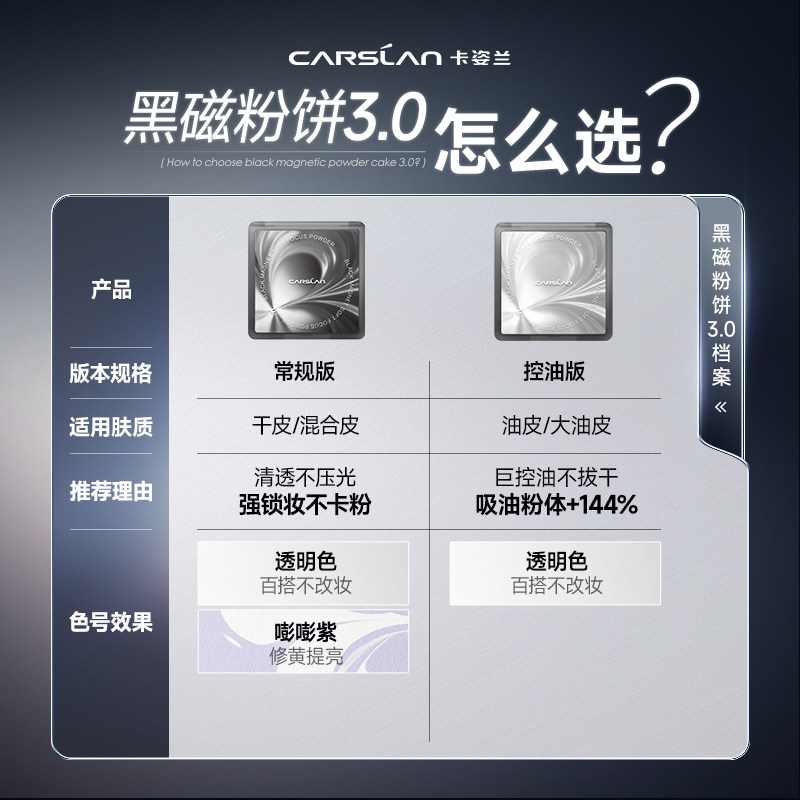 38开门红/3.0卡姿兰黑磁粉饼散粉定妆粉,是一款集控油、持妆、柔焦于一体的定妆神器。采用“黑磁”科技,细腻粉体如磁般贴合肌肤,有效吸附多余油脂,打造雾感哑光妆效。紫调蜜粉设计,可提亮暗沉,均匀肤色,令底妆更通透自然。轻盈质地不卡粉、不浮粉,持久锁妆长达12小时,适合油性及混合性肌肤。便携盒装设计,附带粉扑与镜子,随时随地轻松补妆。无论是日常通勤还是长时间外出,都能保持妆容清爽精致,是打造无瑕底妆的理想选择,助你轻松开启“38开门红”,自信闪耀每一天。