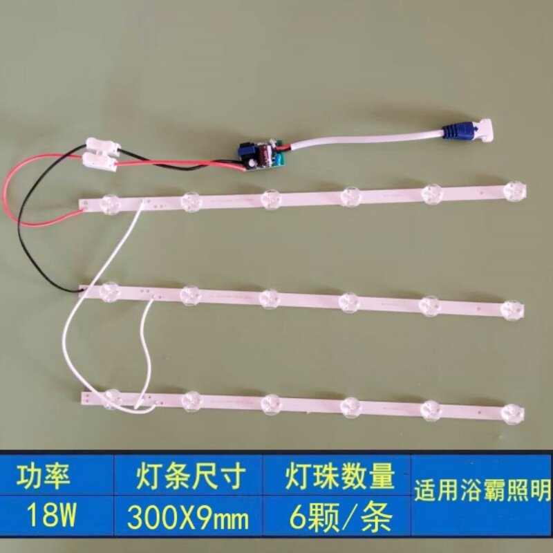 浴霸照明LED灯条改造直发光平板灯光源,采用高透光率光学级PMMA材质透镜,实现光线均匀扩散,有效消除眩光与暗区,提升照明舒适度。该长条替换光源配件专为老旧浴霸升级设计,兼容性强,安装简便,可直接替换传统灯管或旧式LED模组。具备高亮度、低功耗、长寿命(可达30000小时以上)等特点,防水防潮性能优异,适用于潮湿浴室环境。支持多种色温选择(如3000K暖光、4000K中性光、6000K白光),满足不同照明需求。是浴霸维修、节能改造的理想配件,兼具实用性与美观性,让旧设备焕发新生。