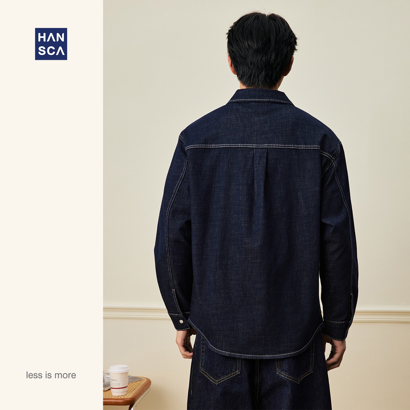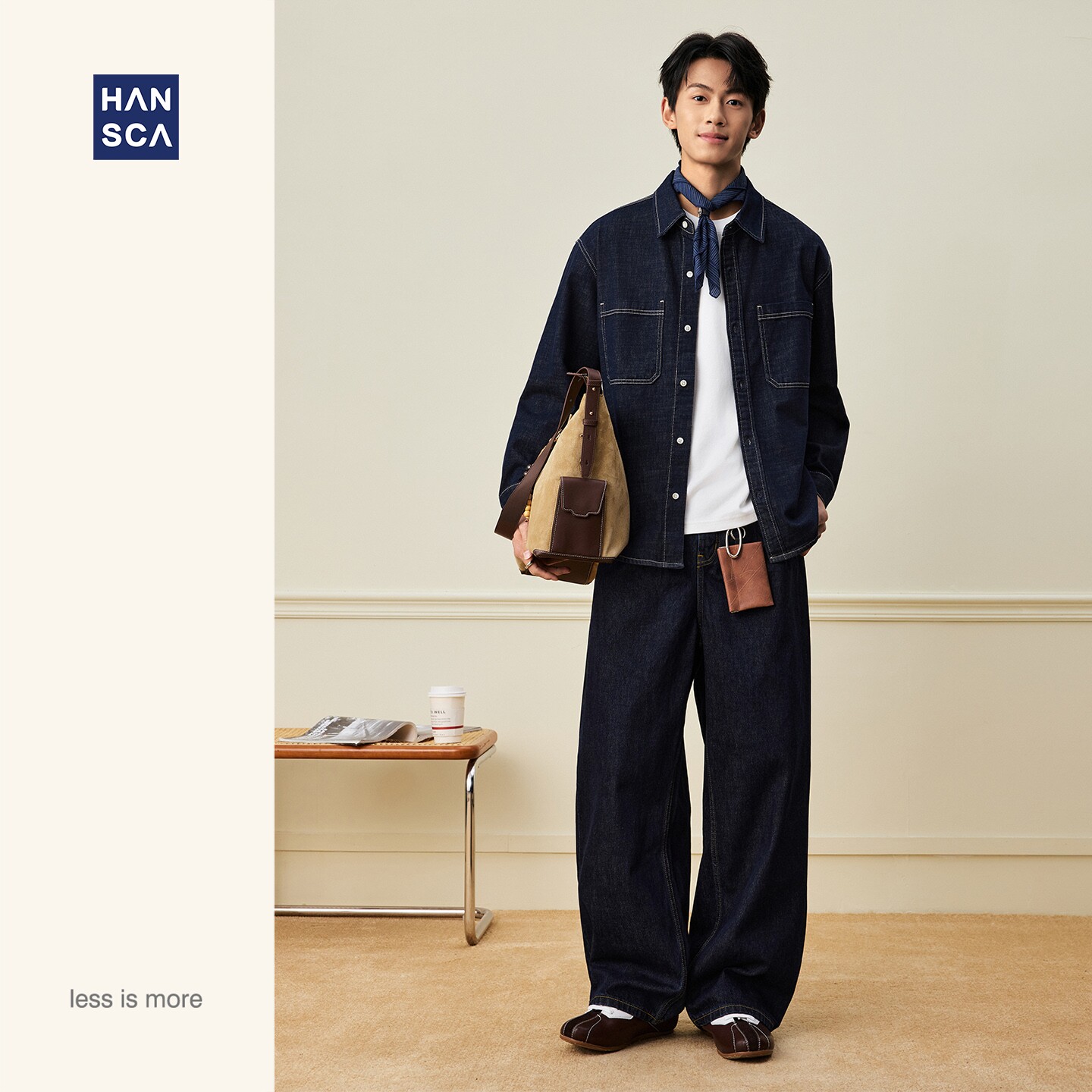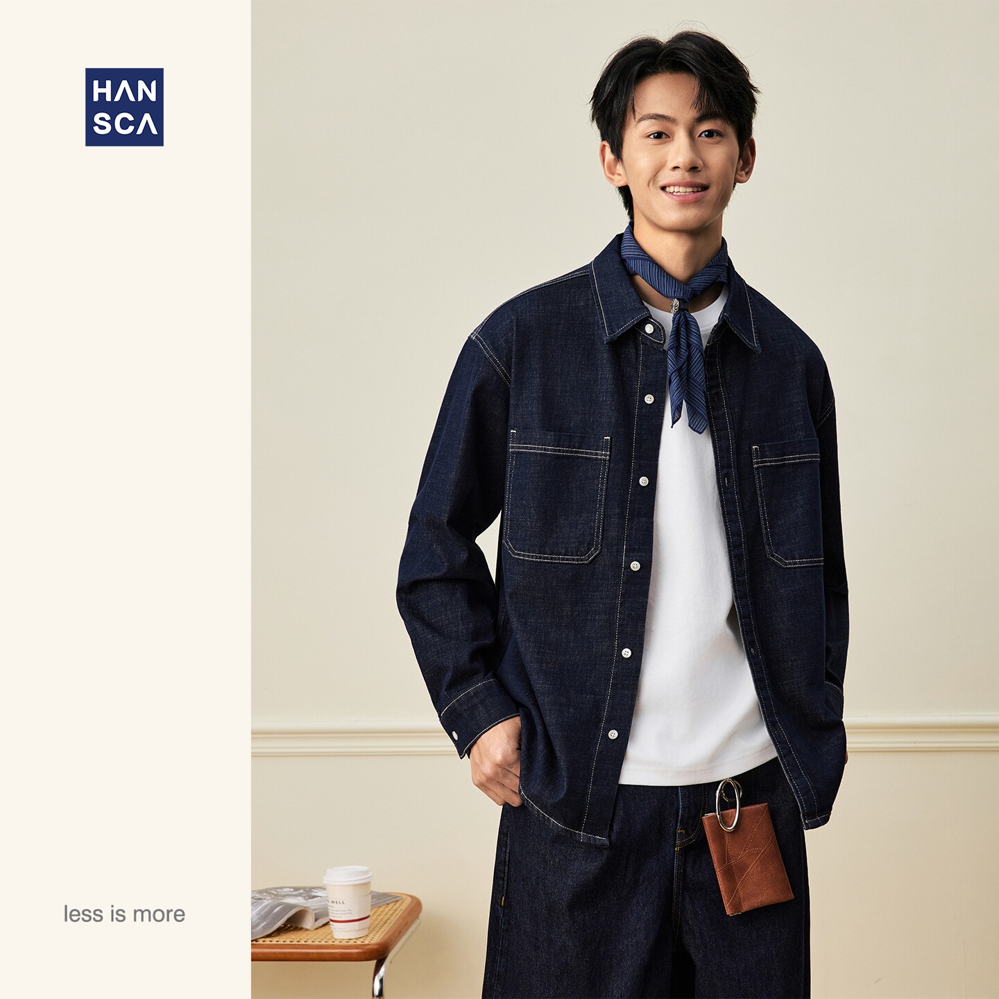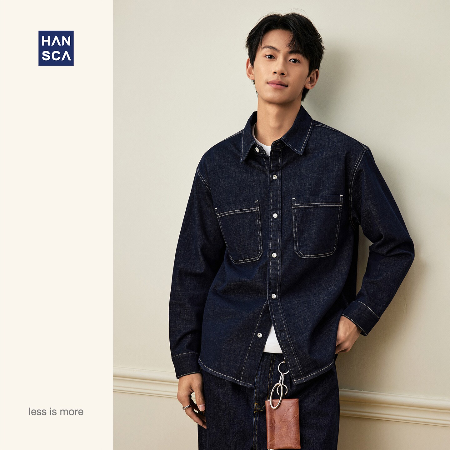 天猫hansca莱赛尔亚麻混纺牛仔衬衫男2026春季肌理感水洗复古衬衣外套