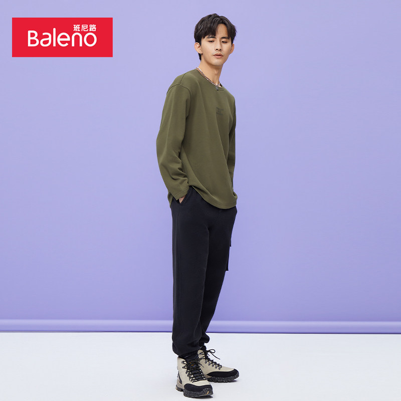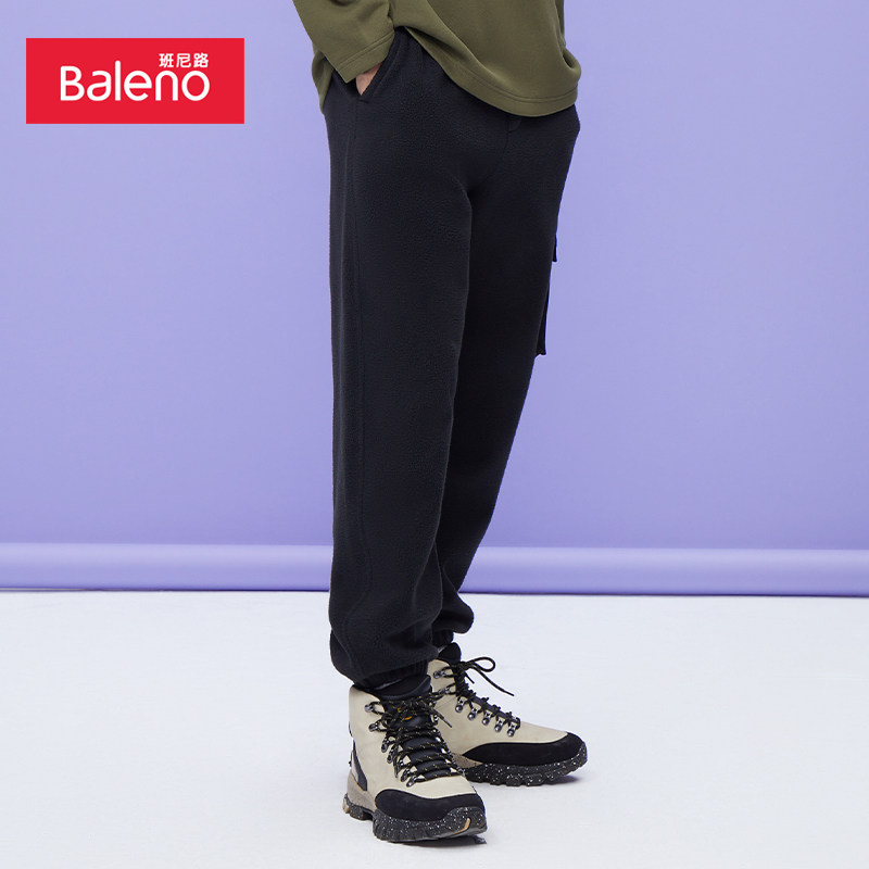 淘宝【59任选2件】班尼路春季新品男装简约休闲布绒拼接针织裤口袋保