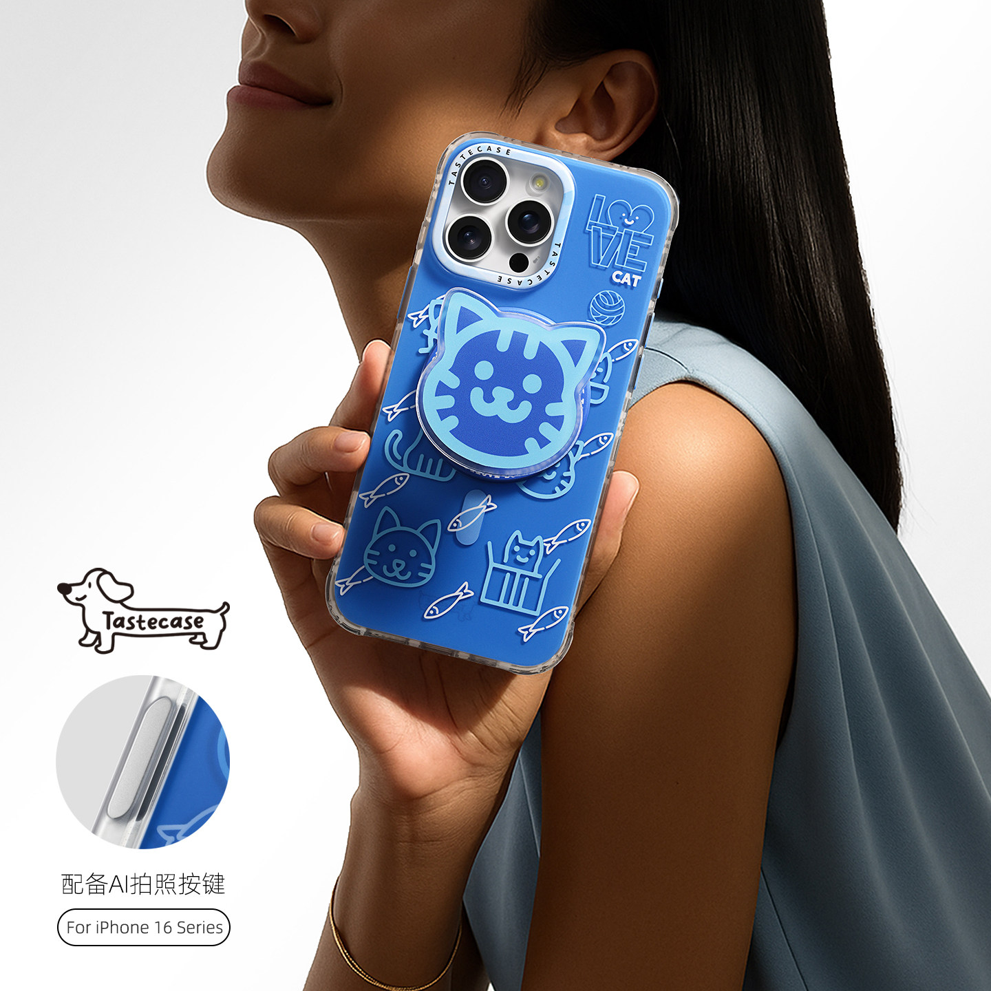 天猫Tastecase I Love Cat蓝色猫咪磁吸手机壳适用苹果iPhone17ProMax/16Pro保护壳新款原创可爱小猫磁吸手机支架