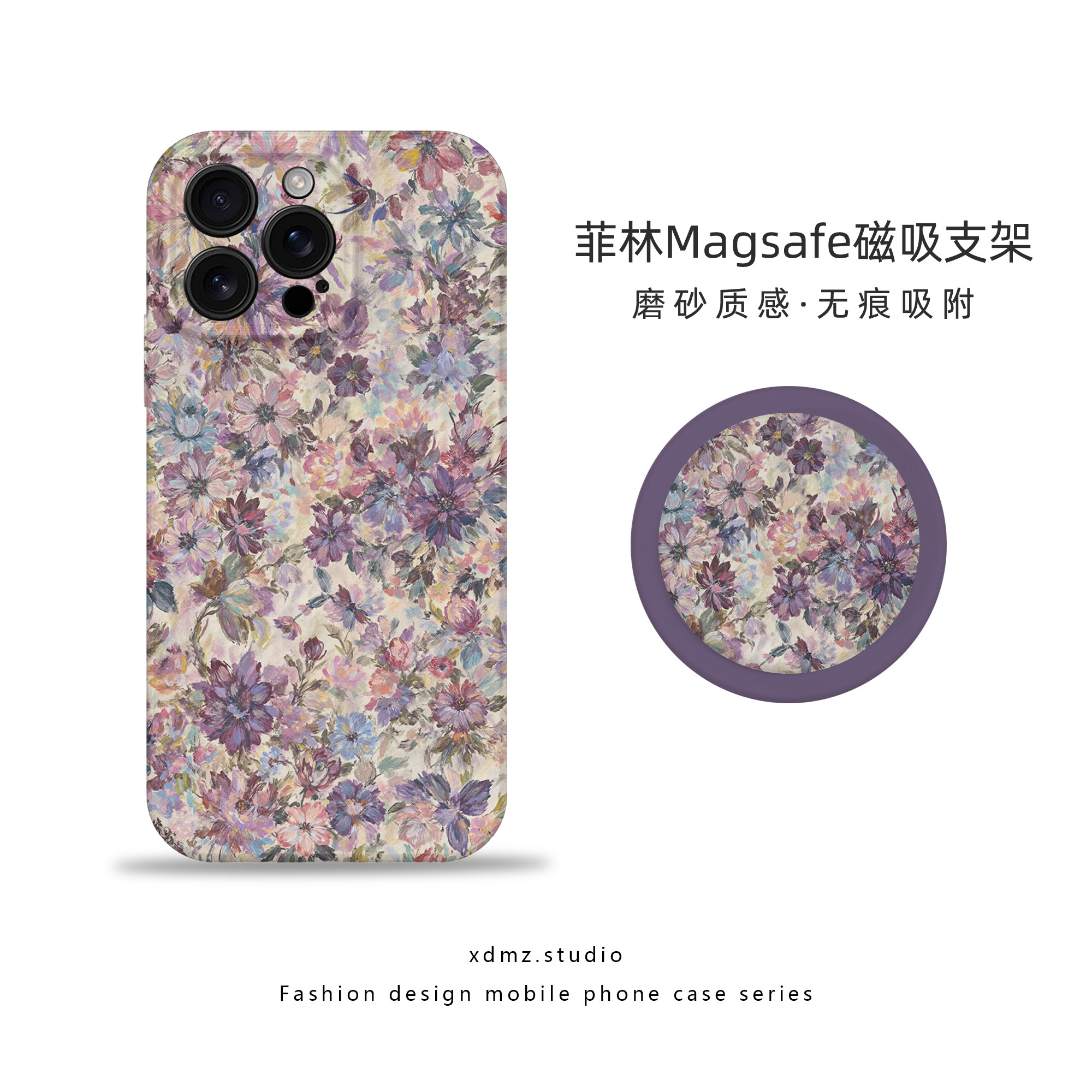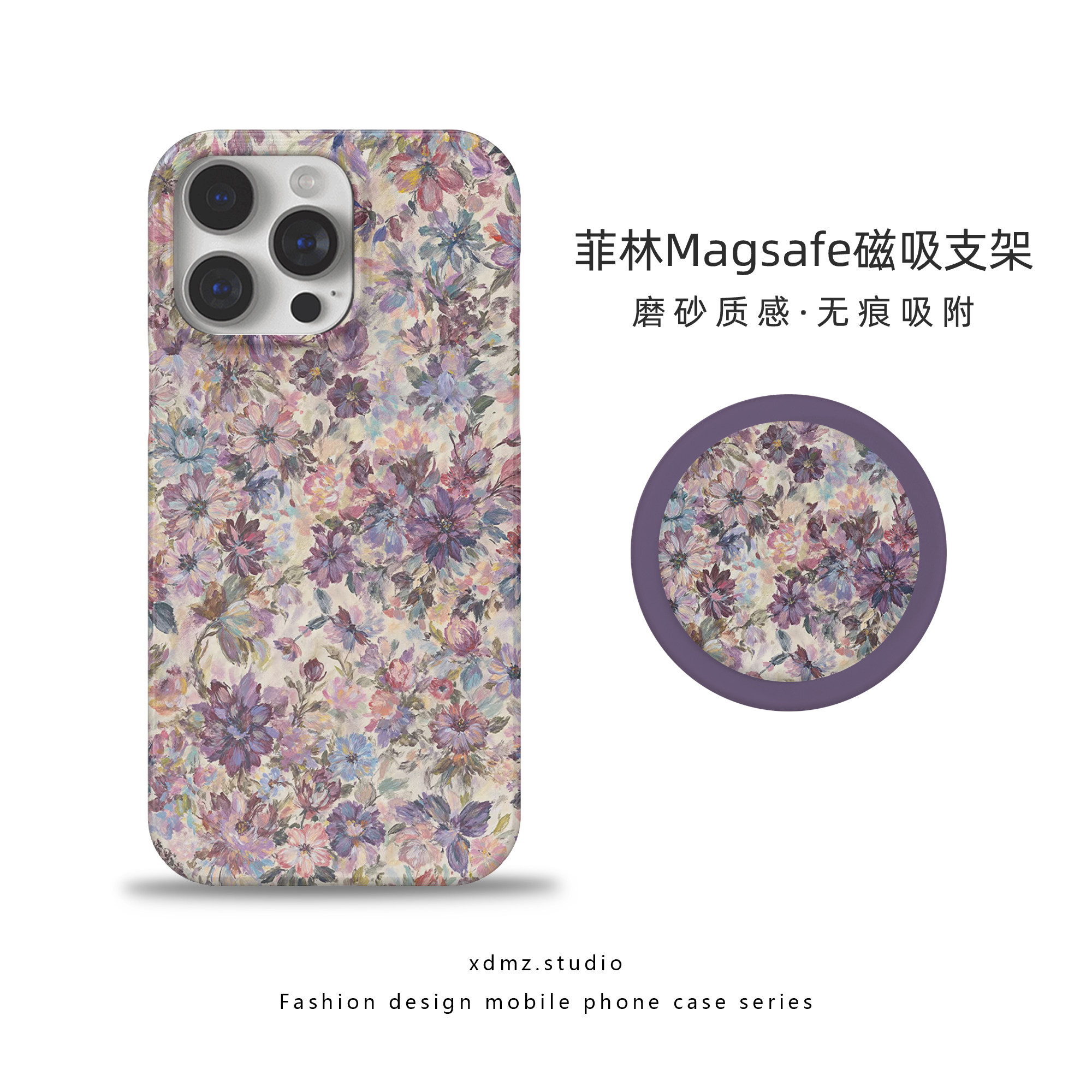 这款小清新碎花磁吸手机壳专为iPhone 17 Pro Max设计,同时兼容16 Pro、15、14、13、12及11 Pro Max等多款机型,适配性强。采用全包防摔设计,四角加高保护,有效缓冲跌落冲击。融入Ins风紫色碎花元素,简约甜美,彰显女性优雅气质。内置强力磁环,精准对齐MagSafe配件,充电稳固不脱落。背部集成隐藏式支架,横竖皆可支撑,追剧办公更便捷。轻薄贴合机身,按键灵敏,开孔精准,兼顾美观与实用,是追求时尚与防护兼备的女士理想之选。
