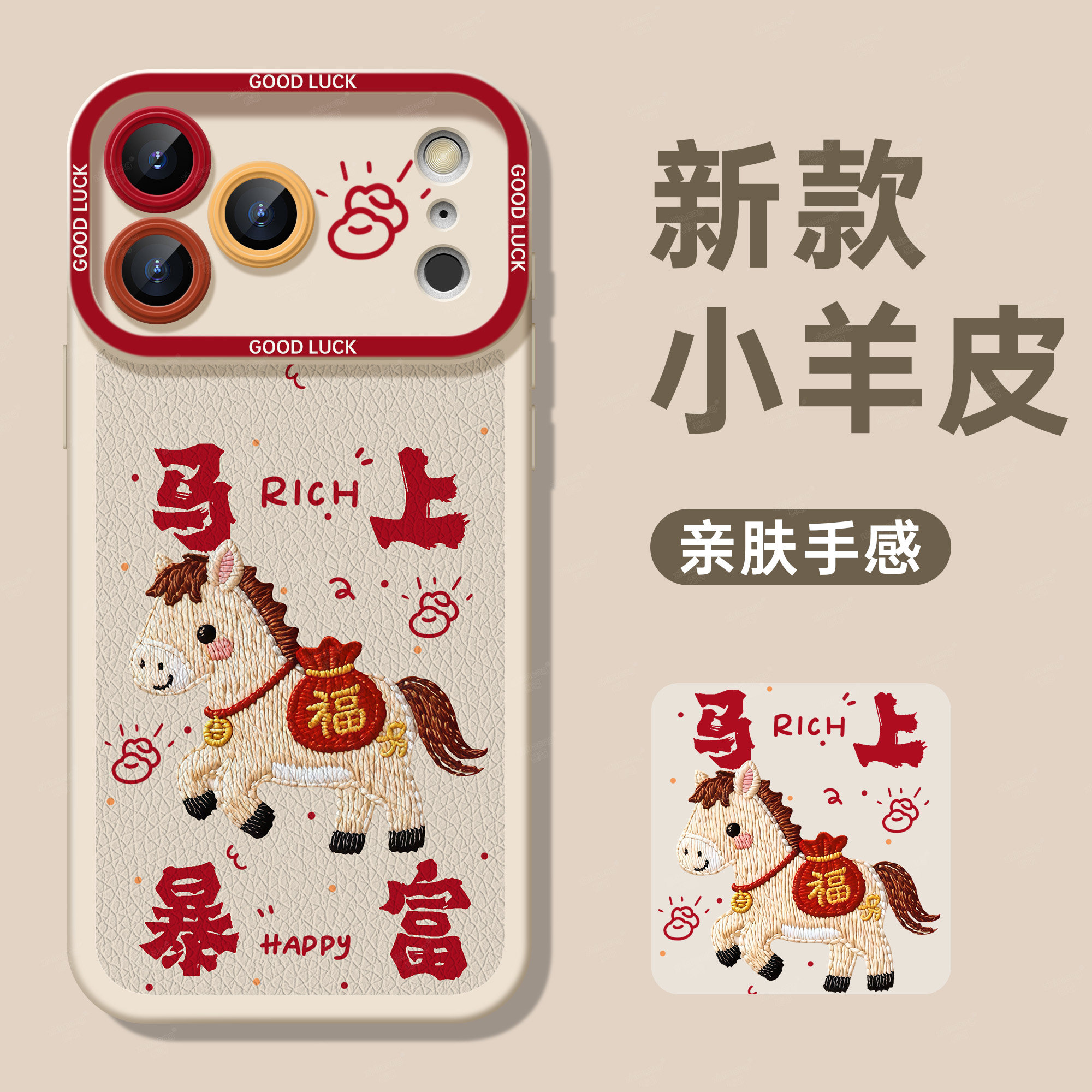 天猫适用苹果17手机壳iphone17promax新年款女16pro秋冬皮质15plus2026马年红色14小众高级感13带挂绳12pm保护套D