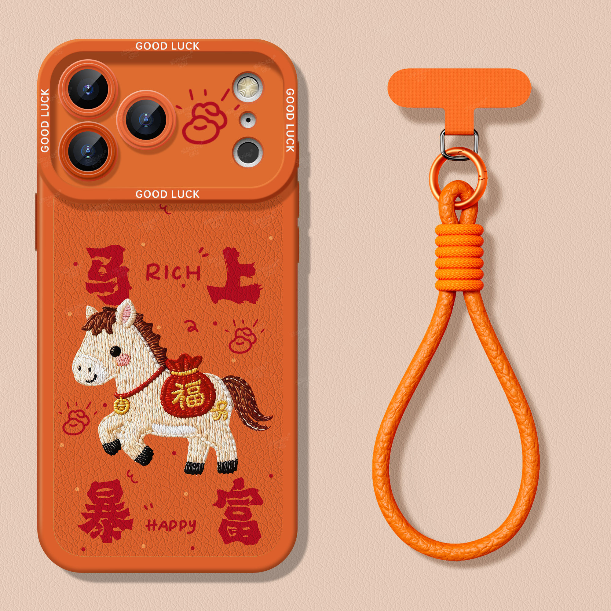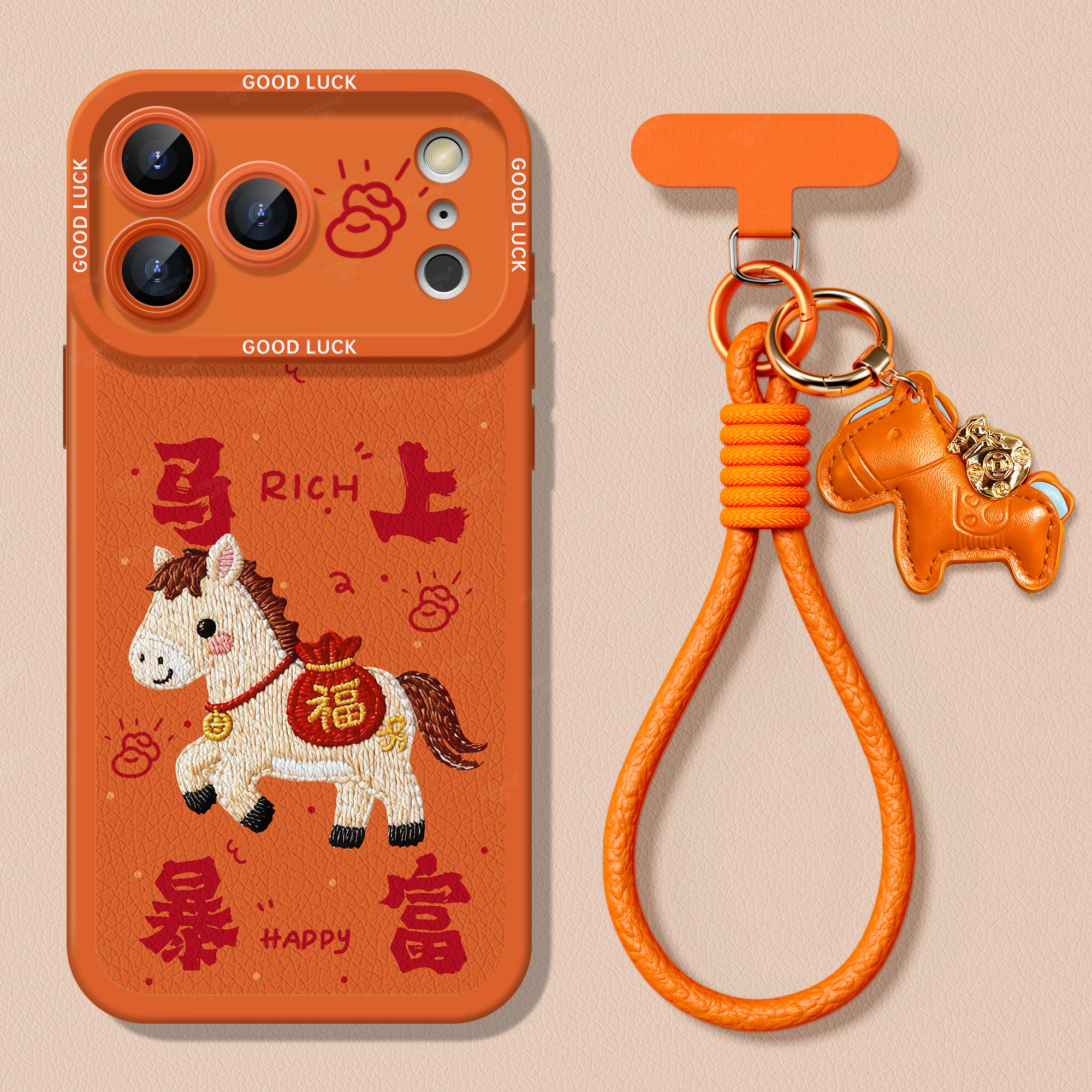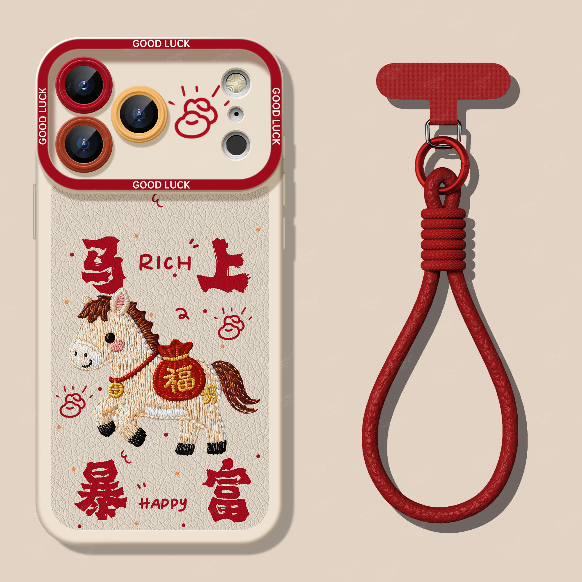 这款专为iPhone 17 Pro Max设计的新年限定手机壳,融合马年红色喜庆元素与秋冬高级皮质质感,兼具节日氛围与日常优雅。采用细腻环保皮革,手感温润,防摔耐磨,贴合机身线条,提供全面保护。特别加入可拆卸挂绳设计,方便携带,增添时尚感。适用于iPhone 13至17系列多款机型(如16 Pro、15 Plus、14、12 Pro Max等),兼容性强。小众设计避免撞款,红色主调寓意吉祥好运,是新年送礼或自用的高颜值实用之选,展现低调奢华的女性魅力。