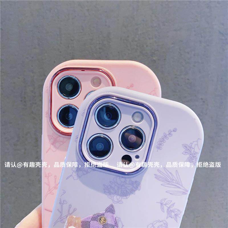 淘卡通ins日韩补妆镜面草莓熊支架16适用iphone13promax手机壳苹果14翻盖12pro硅胶11女可爱15promax防摔镜子