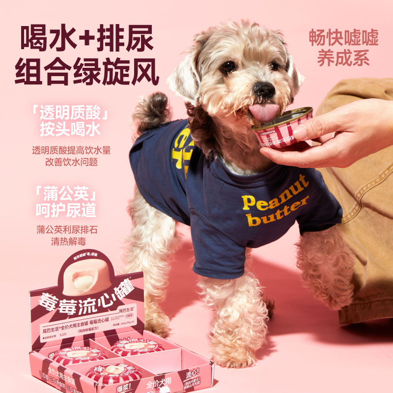 天猫尾巴生活狗狗莓莓流心主食罐85g*4罐肉肉盛宴营养零食试吃狗罐头