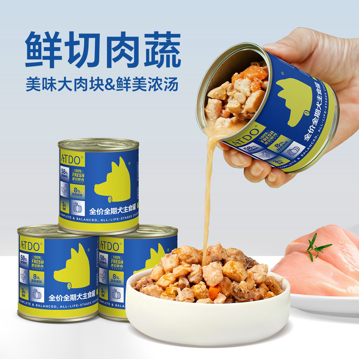 天猫ATDO低脂狗狗主食罐头幼成犬肥胖中小型犬软粮鸡肉牛肉宠物湿狗粮