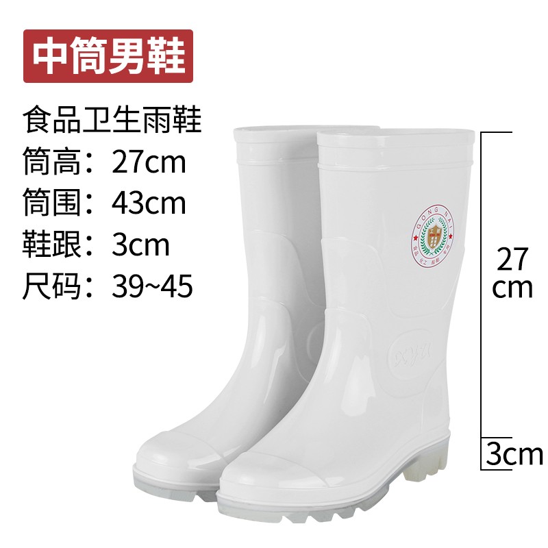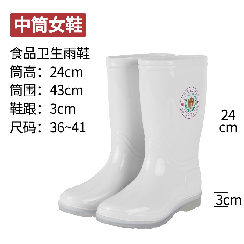 淘宝卫生食品雨靴男女白色牛筋底胶鞋防滑耐酸耐碱耐油高筒防水雨鞋