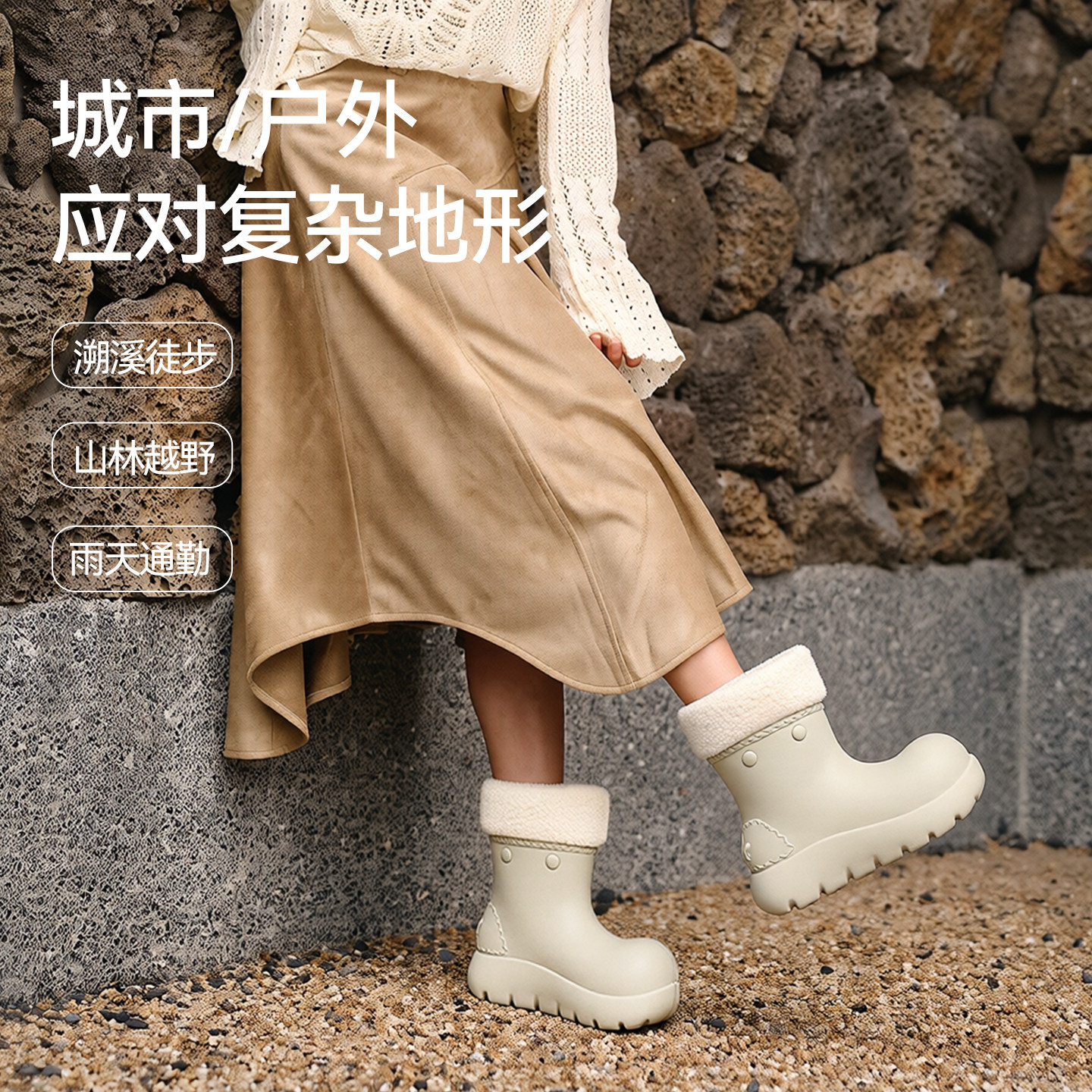 UBZ防水厚底加绒皮面雨靴女2026年冬季新款,集实用与时尚于一体,专为寒冷雨雪天气设计。采用高品质防水皮面,有效抵御湿冷侵袭,内里加绒保暖,舒适亲肤,适合冬季长时间穿着。厚底设计不仅提升整体造型感,更具备隐形增高效果,轻松拉长腿部线条。短靴版型搭配小丑鞋元素,个性俏皮,打破冬日沉闷,轻松驾驭多种穿搭风格。防滑耐磨大底,抓地力强,行走更安全。无论是雪地出行、日常通勤,还是户外休闲,这款雨靴都能为你提供温暖与时尚的双重保障,是2026年冬季不可或缺的潮流单品。