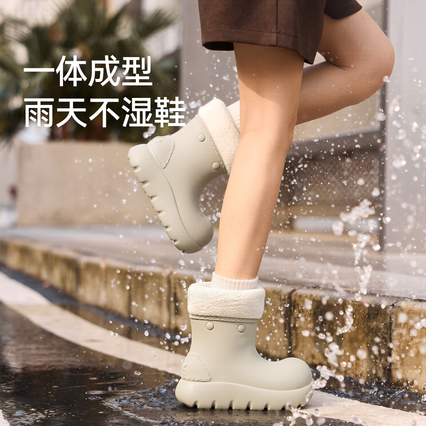 天猫UBZ 防水厚底加绒皮面雨靴女2026年冬季新款增高雪地靴小丑鞋短靴