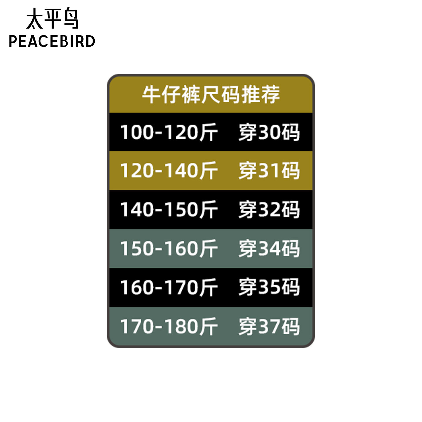 天太平鸟男装 夏季直筒质感白色牛仔中蓝黑牛仔裤