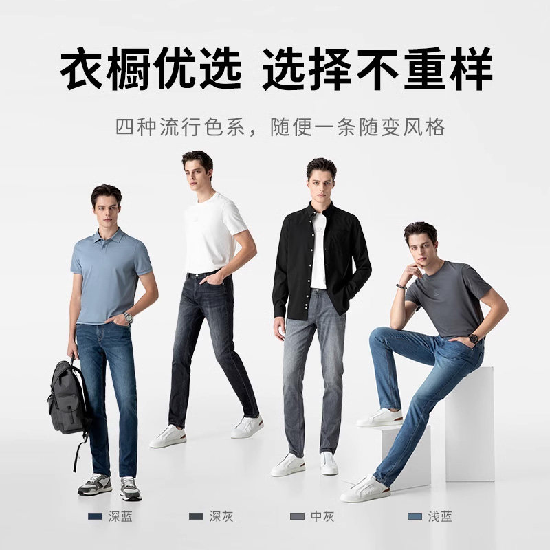 天百斯盾官方男装牛仔裤25年秋冬新款保暖云感棉舒适通勤中直筒长裤