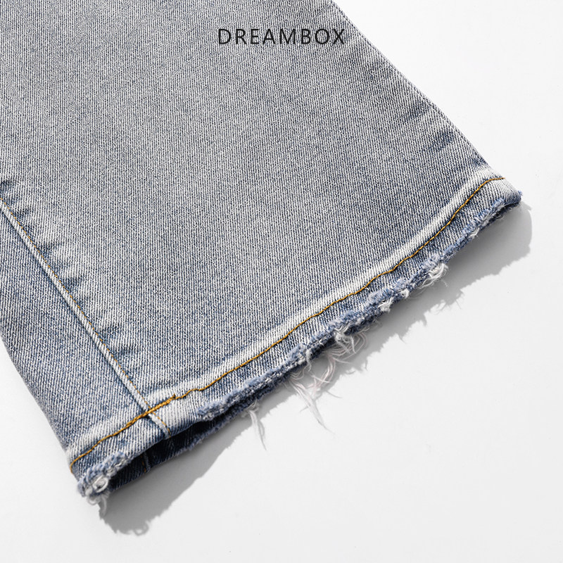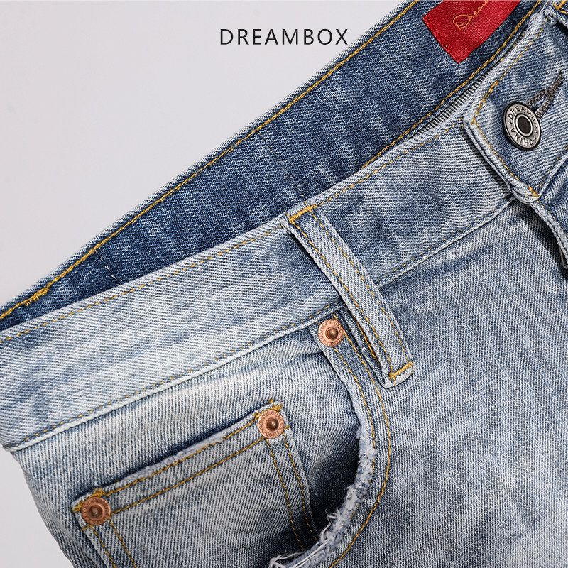 DREAMBOX钧博牛仔裤,采用水洗复古工艺打造的浅蓝色弹力直筒男裤,融合经典与潮流,轻松穿出都市休闲范儿。优质棉弹面料,柔软亲肤,回弹性佳,久穿不易变形,兼顾舒适与型格。直筒剪裁修饰腿型,适合多种体型,百搭易穿。无论是搭配简约T恤、衬衫,还是卫衣、夹克,都能轻松驾驭日常通勤、周末出游等场景。做旧水洗质感增添复古韵味,细节精致,彰显品味。DREAMBOX以匠心工艺诠释现代男性对时尚与舒适的追求,是衣橱中不可或缺的百搭单品,轻松演绎随性而不失格调的街头风格。