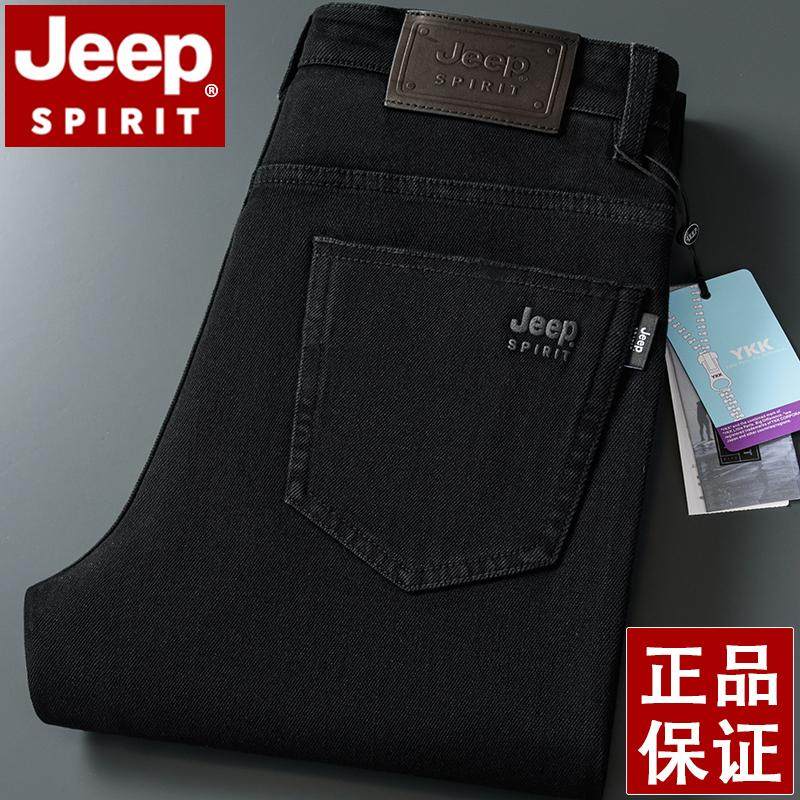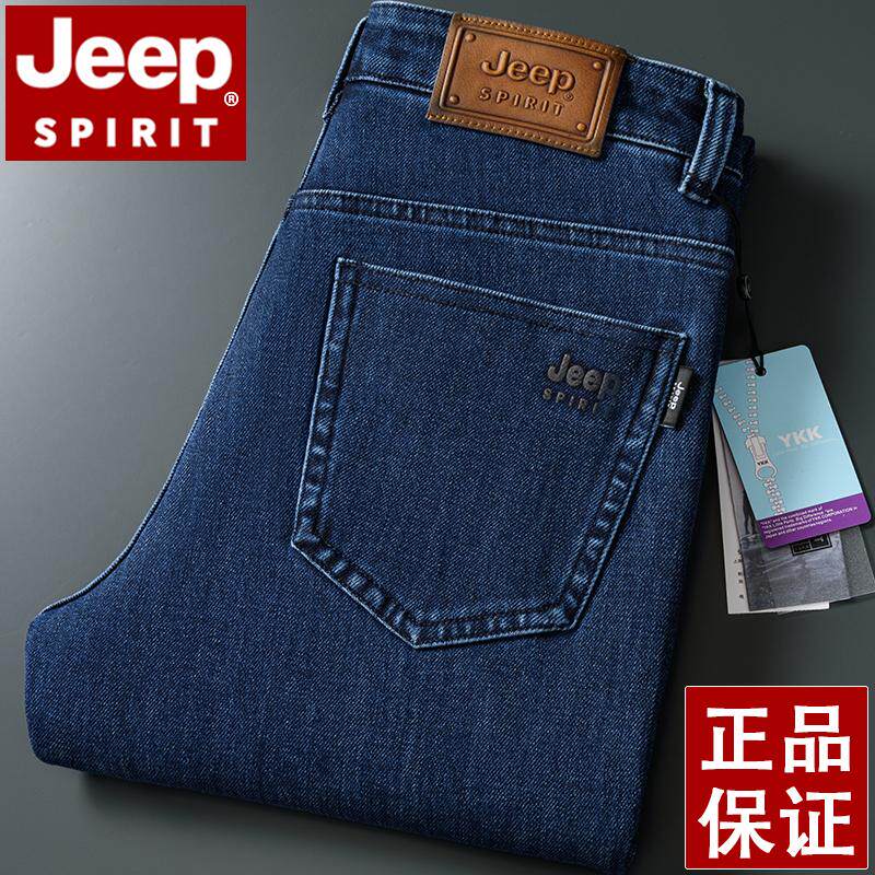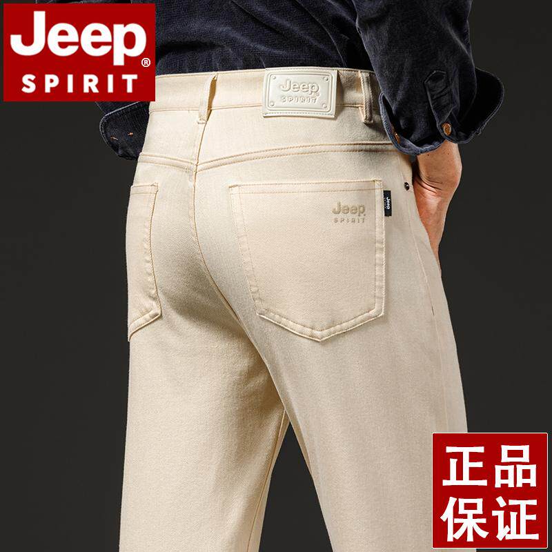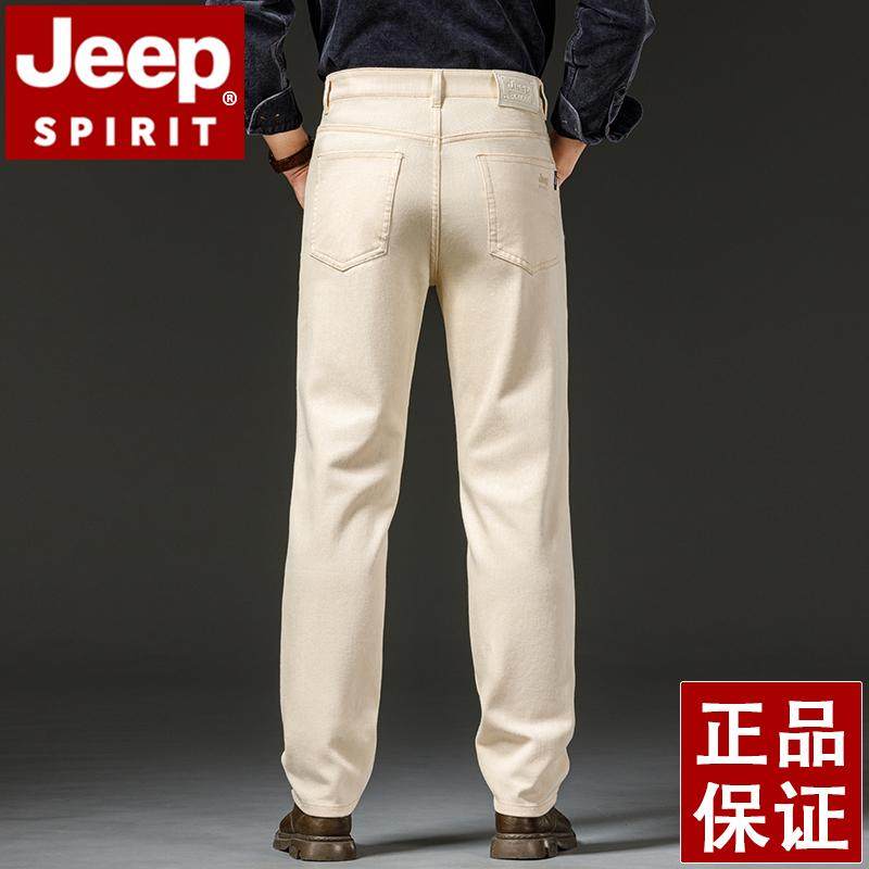 淘宝JEEP吉普三防牛仔裤男秋冬厚款直筒宽松大码白色国际大牌男长裤子