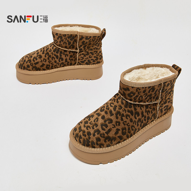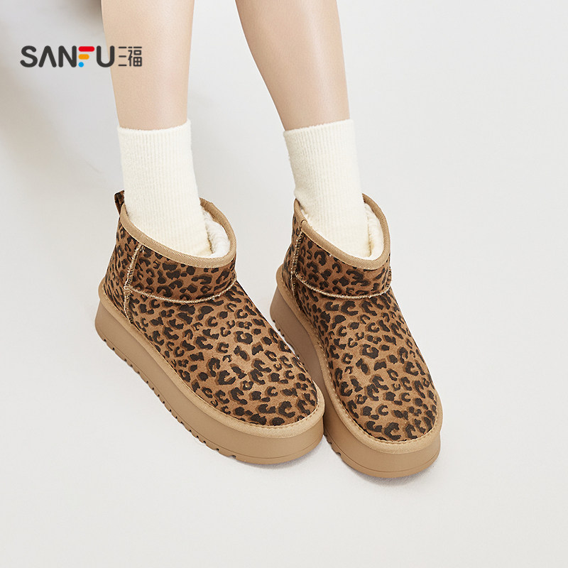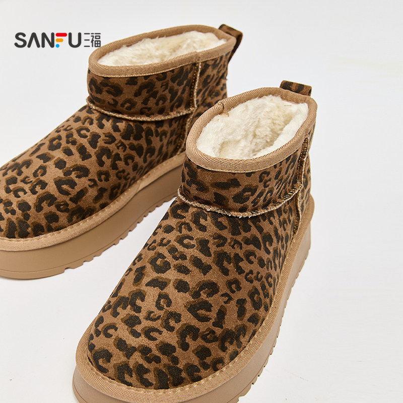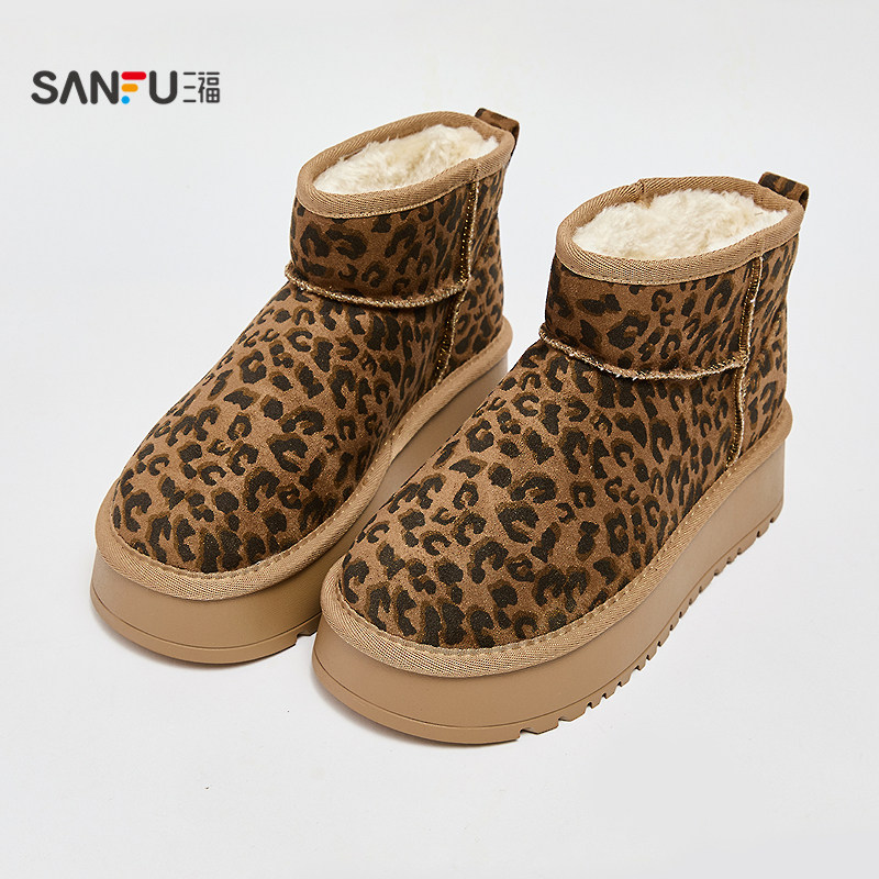 天猫三福女雪地靴冬季经典重塑豹纹增高厚底圆头毛毛鞋女鞋851039