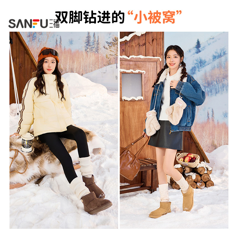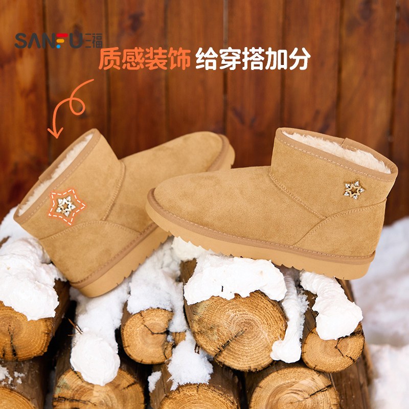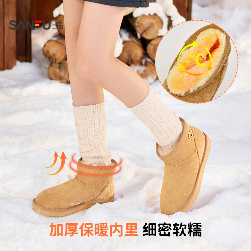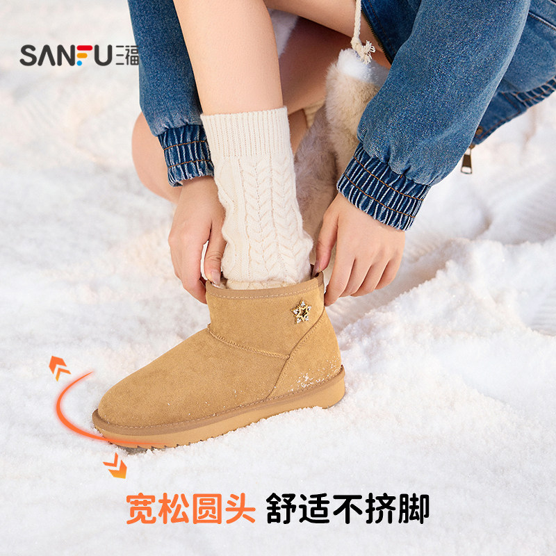 天猫三福女雪地靴冬季简约休闲风圆头毛毛鞋保暖靴子女鞋845953