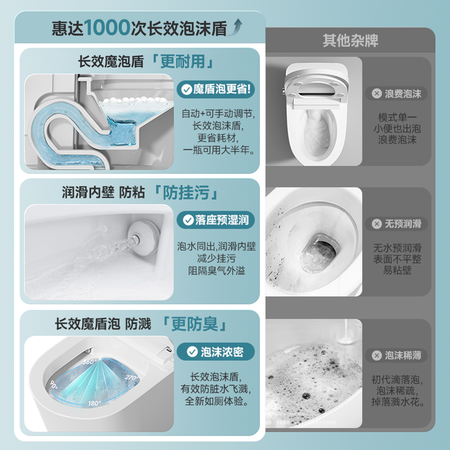 天猫惠达魔盾Max智能马桶轻智能脚感冲水无水压限制泡沫盾带水箱Z990P