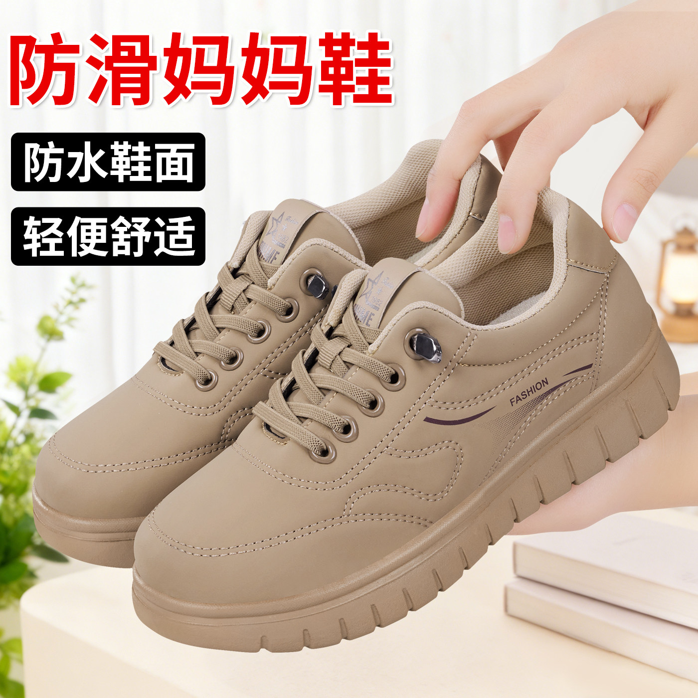 老北京布鞋女新款春秋季皮面中老年妈妈休闲不累脚防滑软底运动鞋
