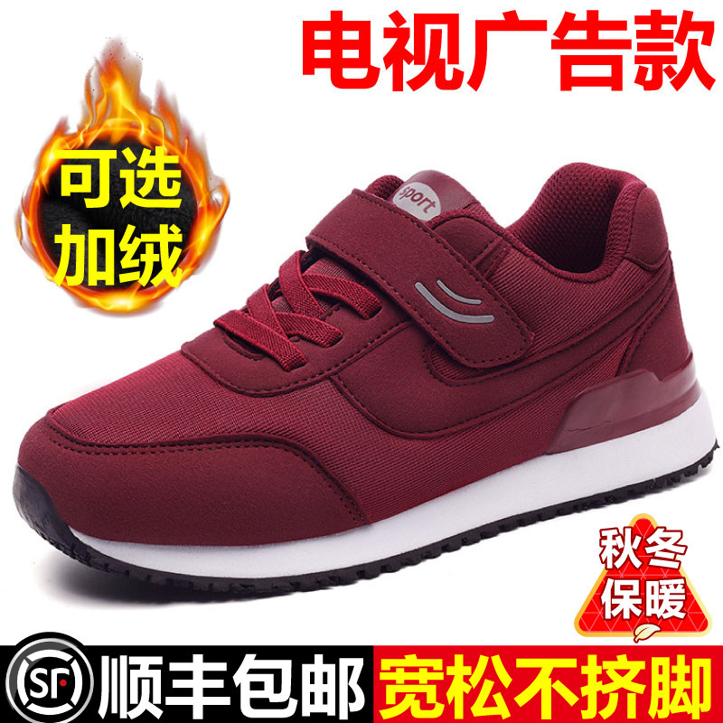 淘中老年休闲鞋老北京布鞋冬季款软底加绒中年单鞋女软面轻便妈妈鞋