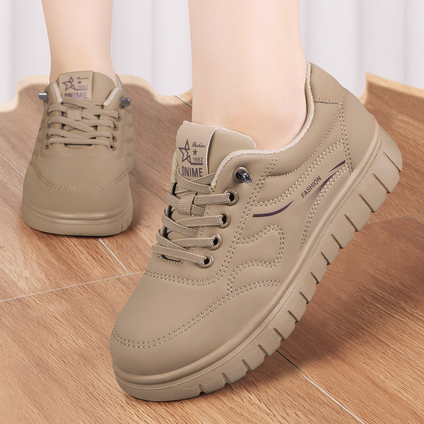 天老北京布鞋女防水防滑软底轻便系带休闲舒适百搭简约中老年妈妈鞋
