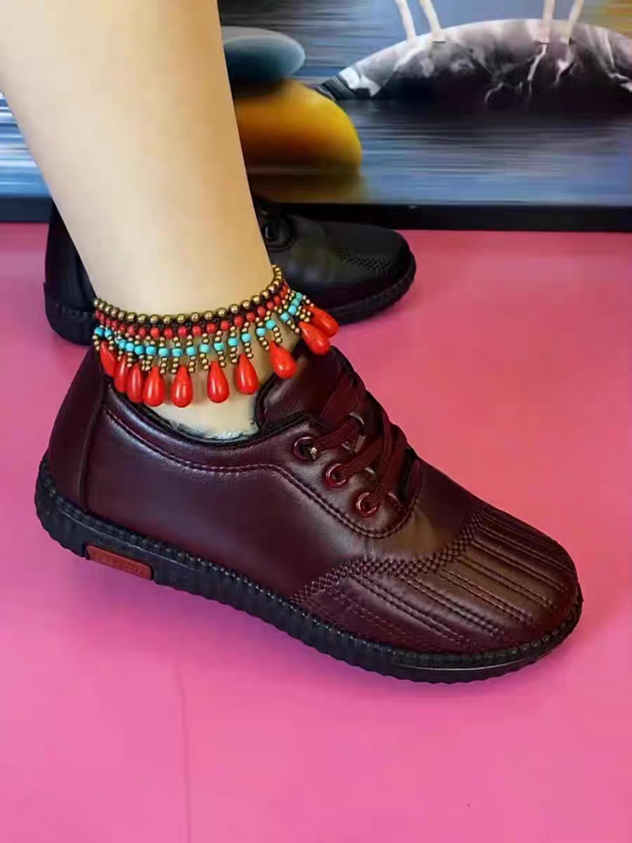 老北京布鞋女新款春秋季皮面中老年妈妈休闲不累脚防滑软底运动鞋