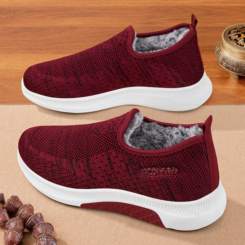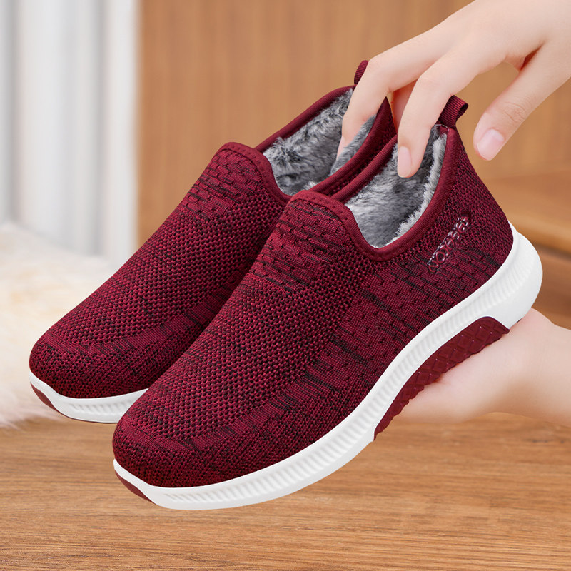 淘中老年休闲鞋老北京布鞋冬季款软底加绒中年单鞋女软面轻便妈妈鞋