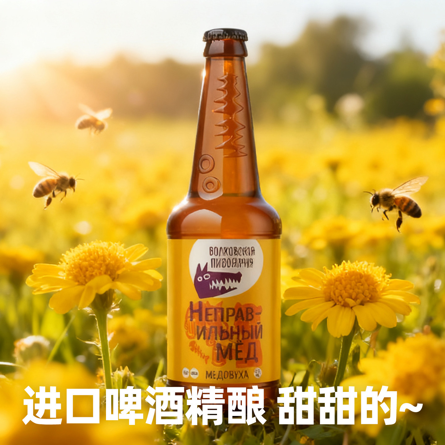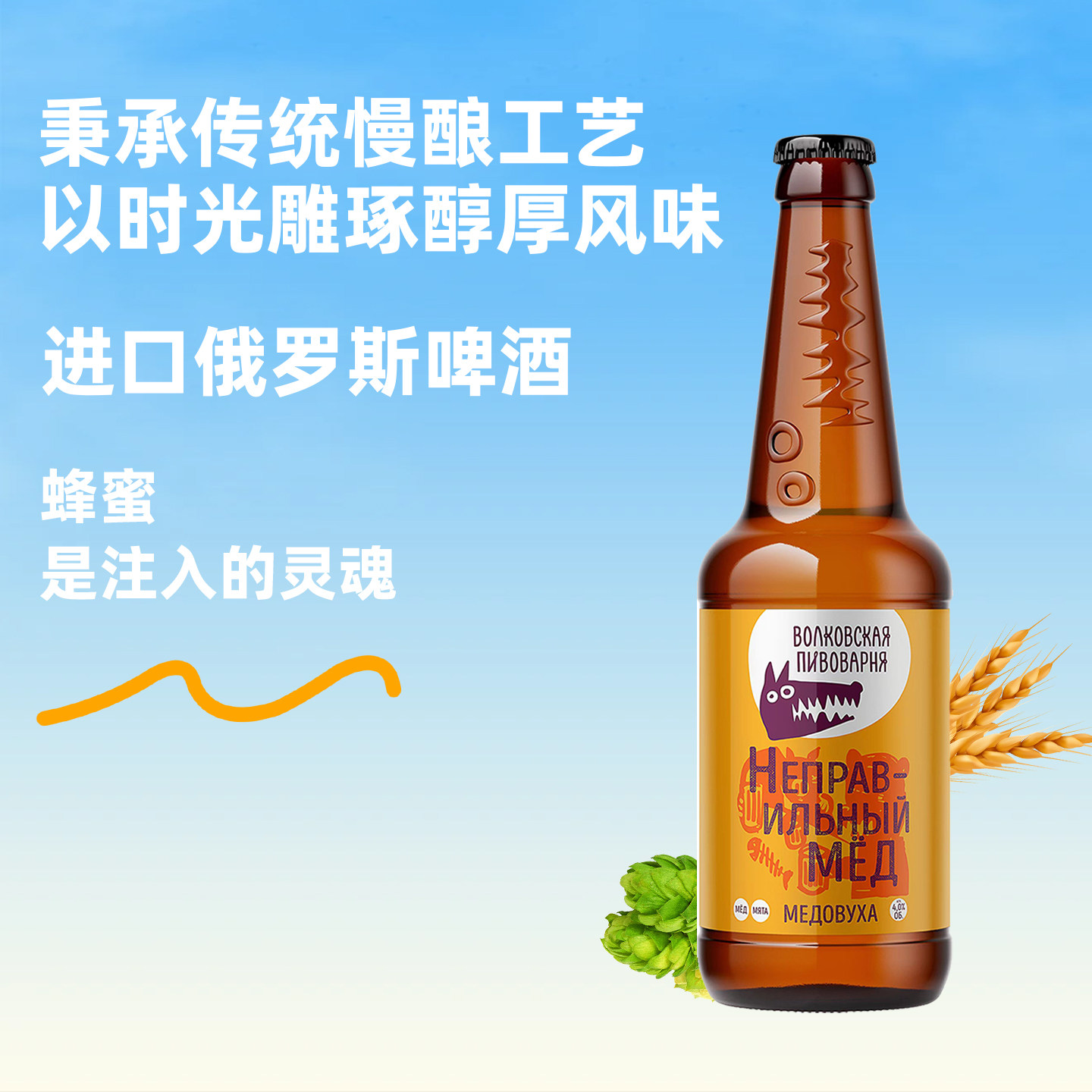 淘宝俄罗斯蜂蜜啤酒原装进口女士精酿微甜低度晚安酒双瓶装礼盒新日期