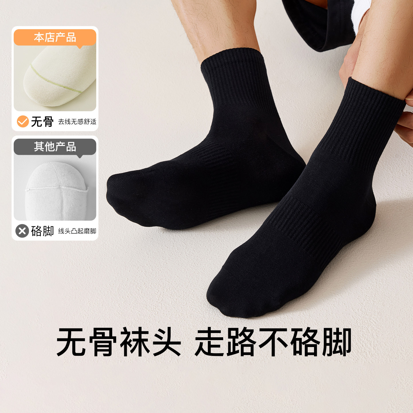 天俞兆林袜子男士纯色抗菌防臭舒适吸汗透气新疆棉百搭中高筒棉袜
