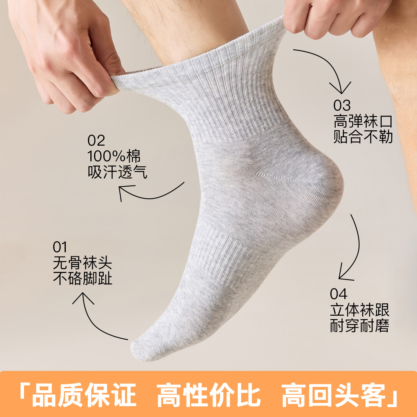 天猫100%棉袜子男士纯棉防臭中筒袜春夏季无骨吸汗抗菌休闲灰色长筒袜