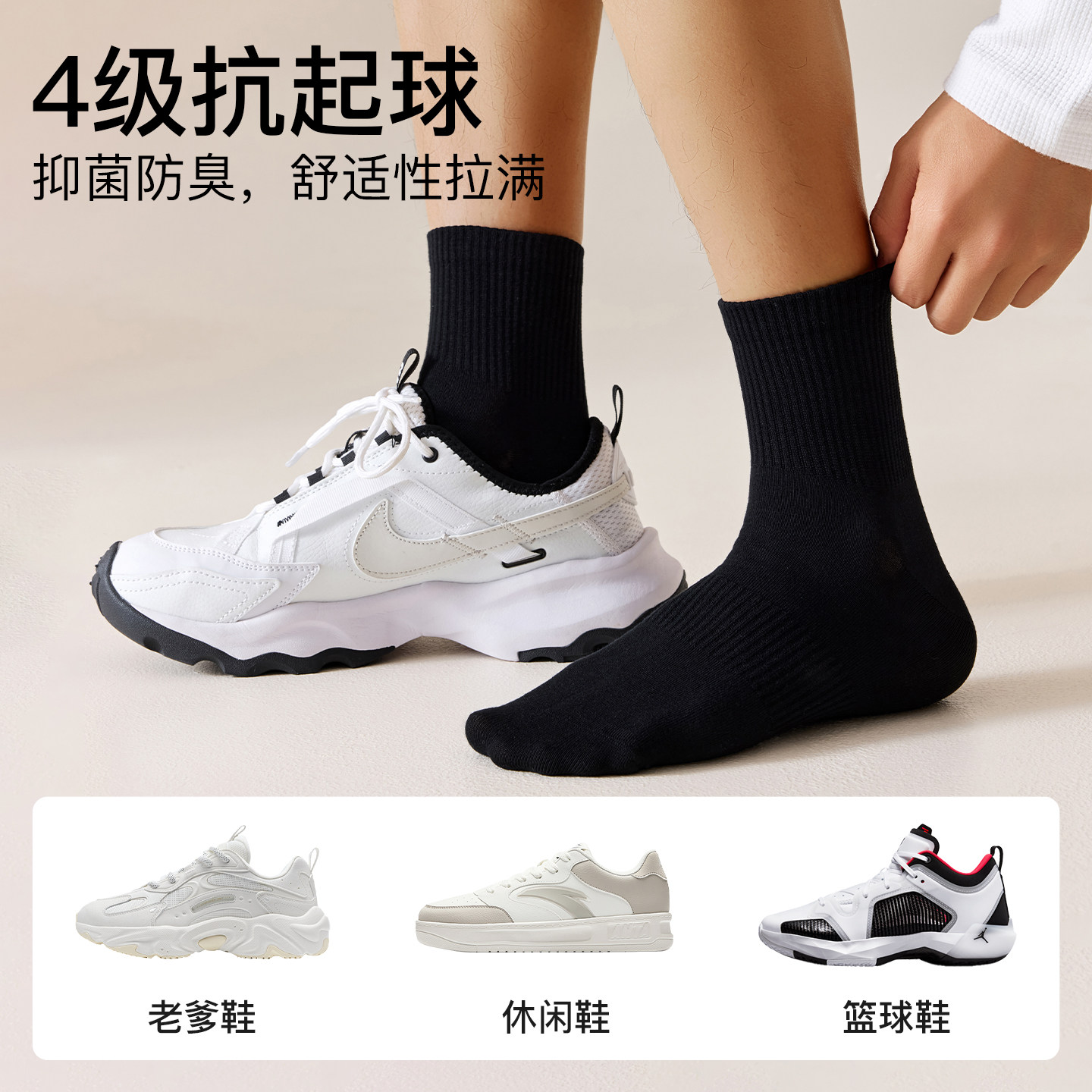 NBA袜子中筒休闲运动袜男款棉袜四季款男子跑步袜透气白色篮球袜