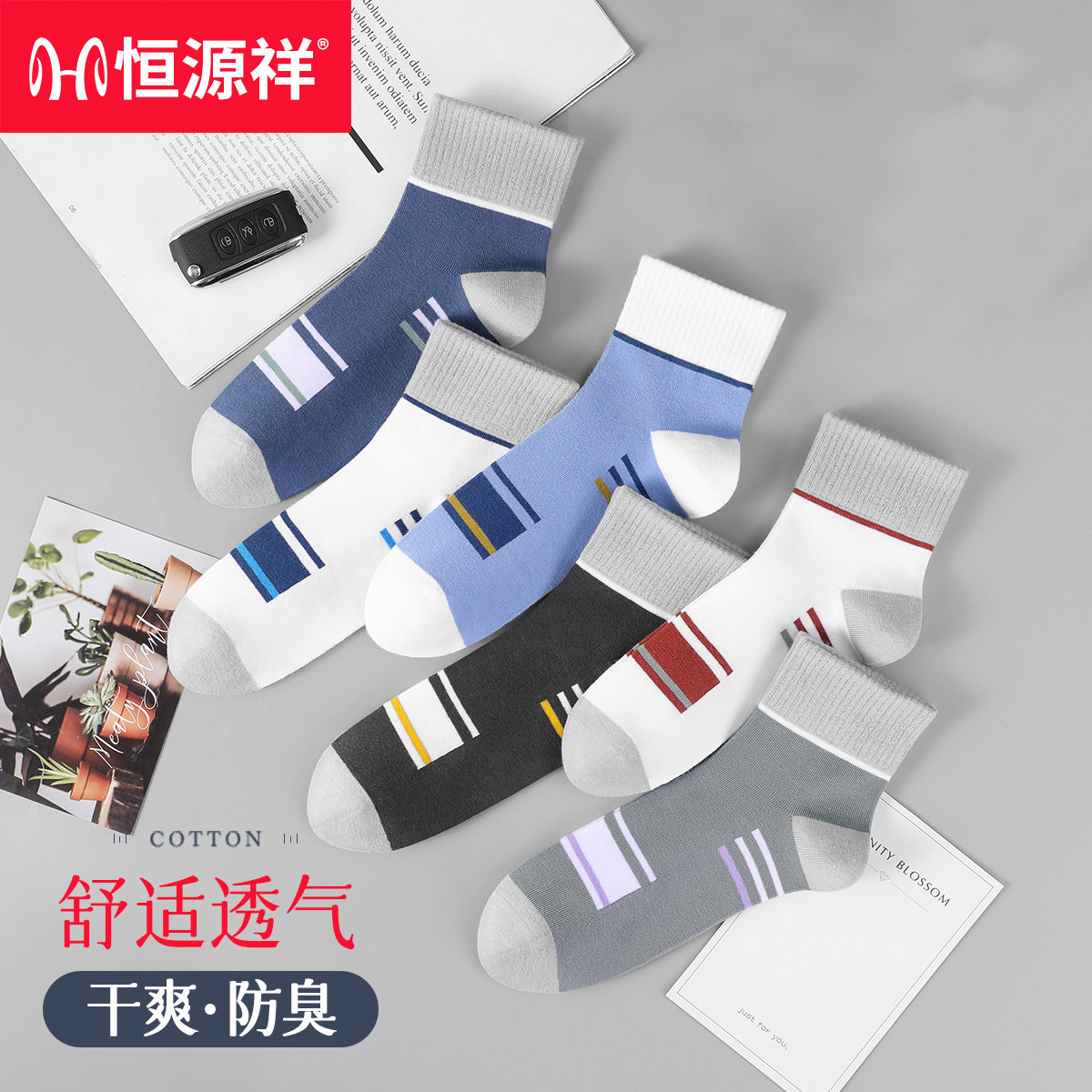 淘宝恒源祥袜子男士中筒袜秋冬季纯棉防臭运动棉袜透气四季休闲商务袜