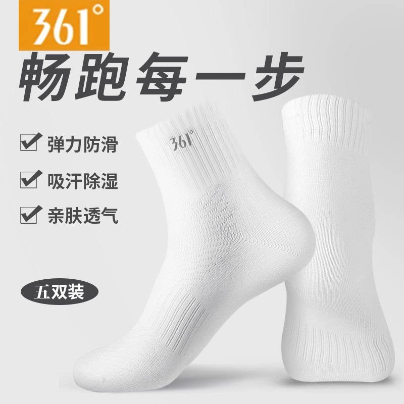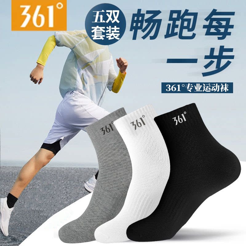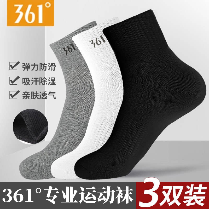 天猫361男袜正品春夏男款运动棉袜吸汗透气跑步袜除臭休闲商务中筒袜