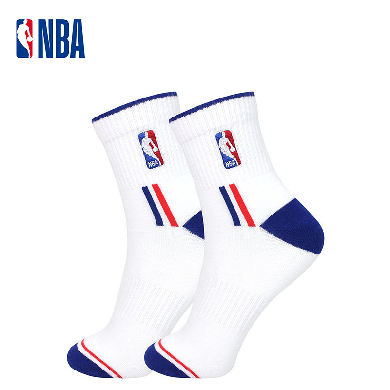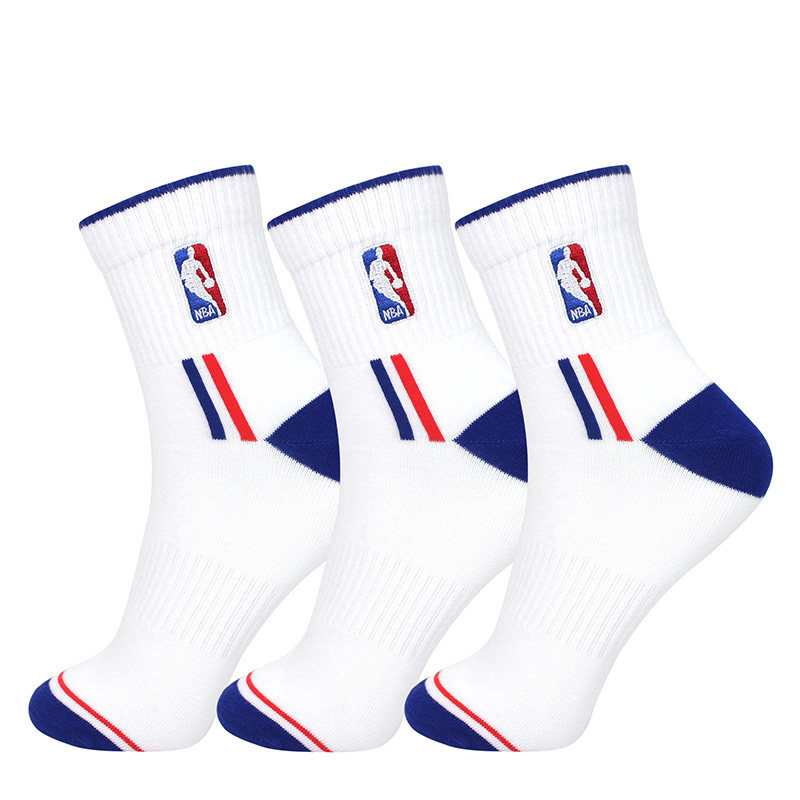 NBA袜子中筒休闲运动袜男款棉袜四季款男子跑步袜透气白色篮球袜
