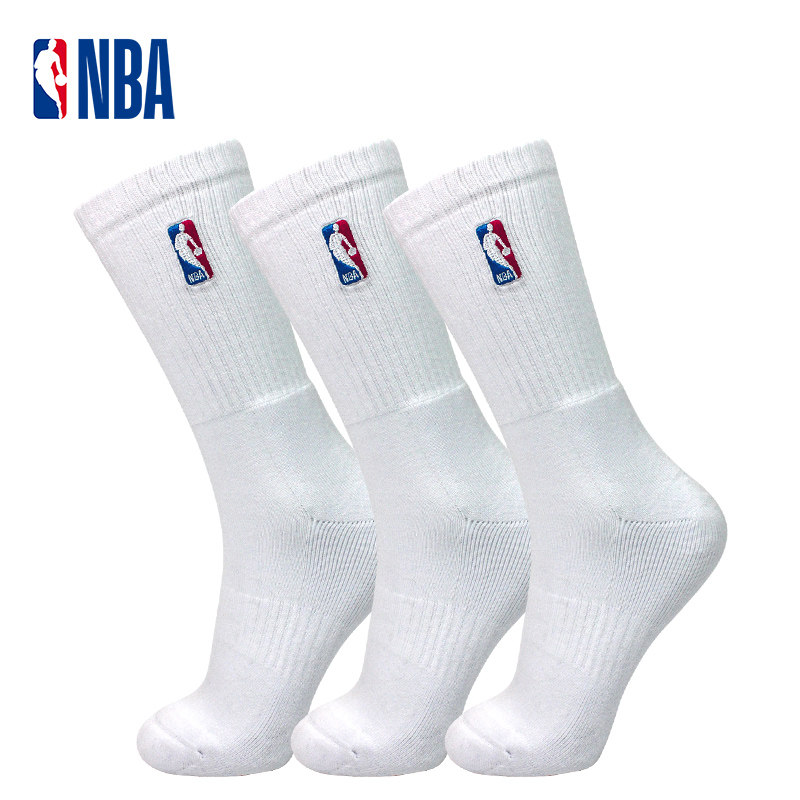 NBA袜子中筒休闲运动袜男款棉袜四季款男子跑步袜透气白色篮球袜