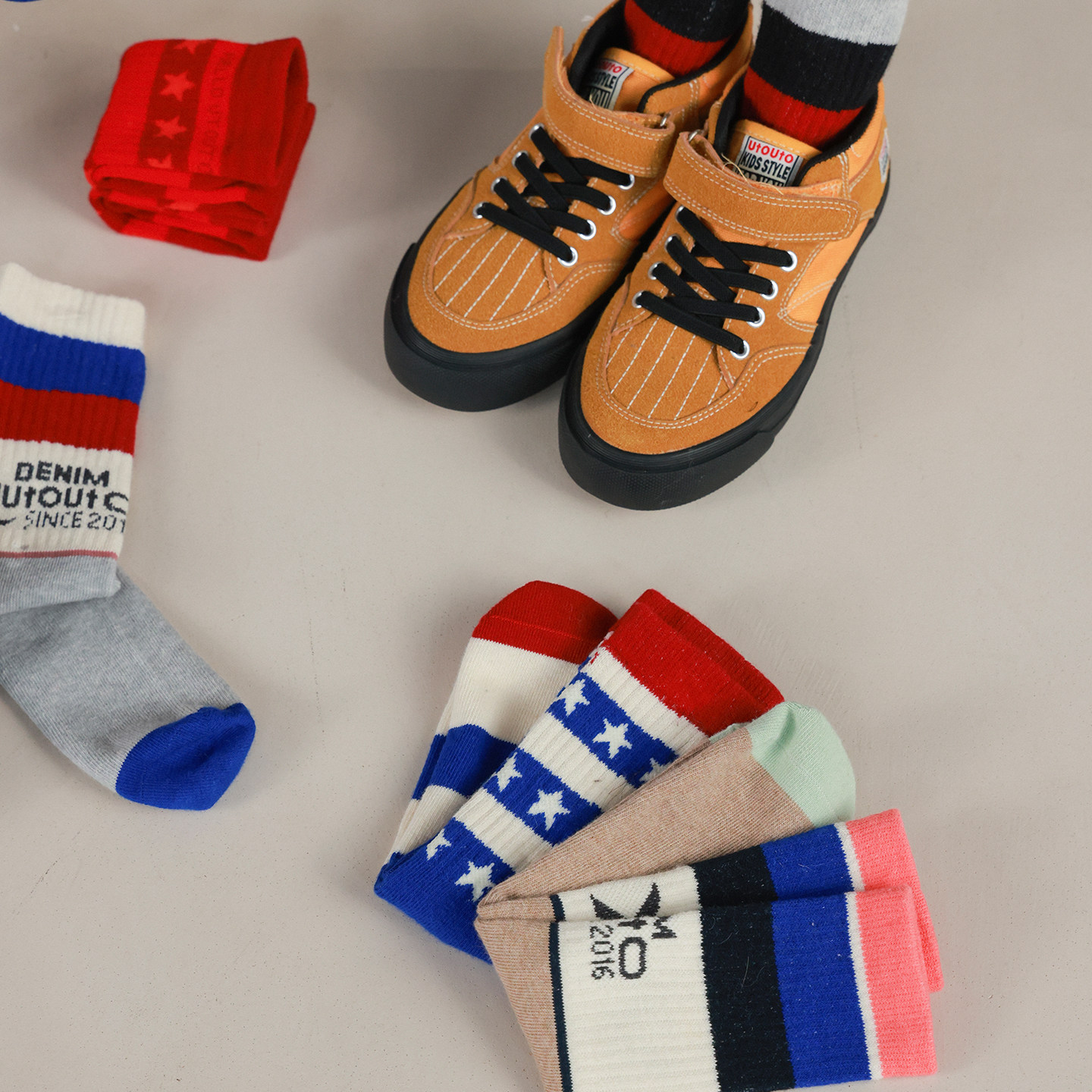 淘宝大耳象女童宽条拼色中筒袜冬季新款宝儿百搭休闲透气亲肤棉袜子