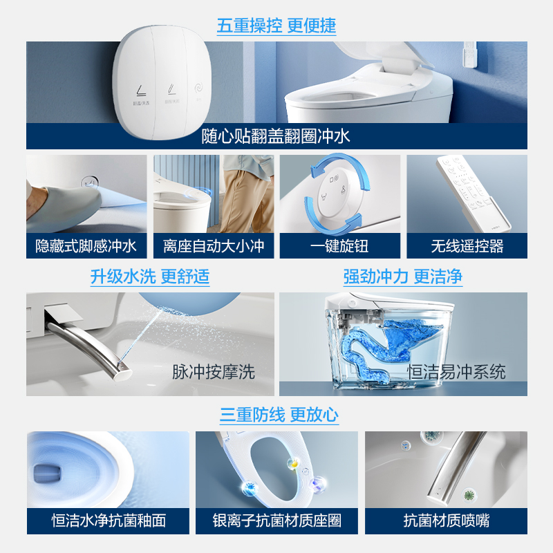 天【新品】恒洁轻智能马桶一体坐便器感应脚感零压劲冲小户型家用E3