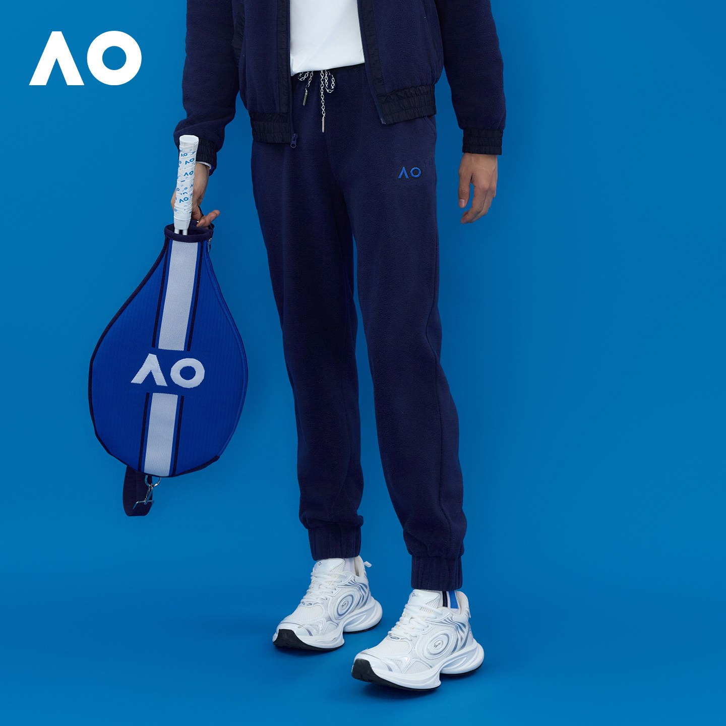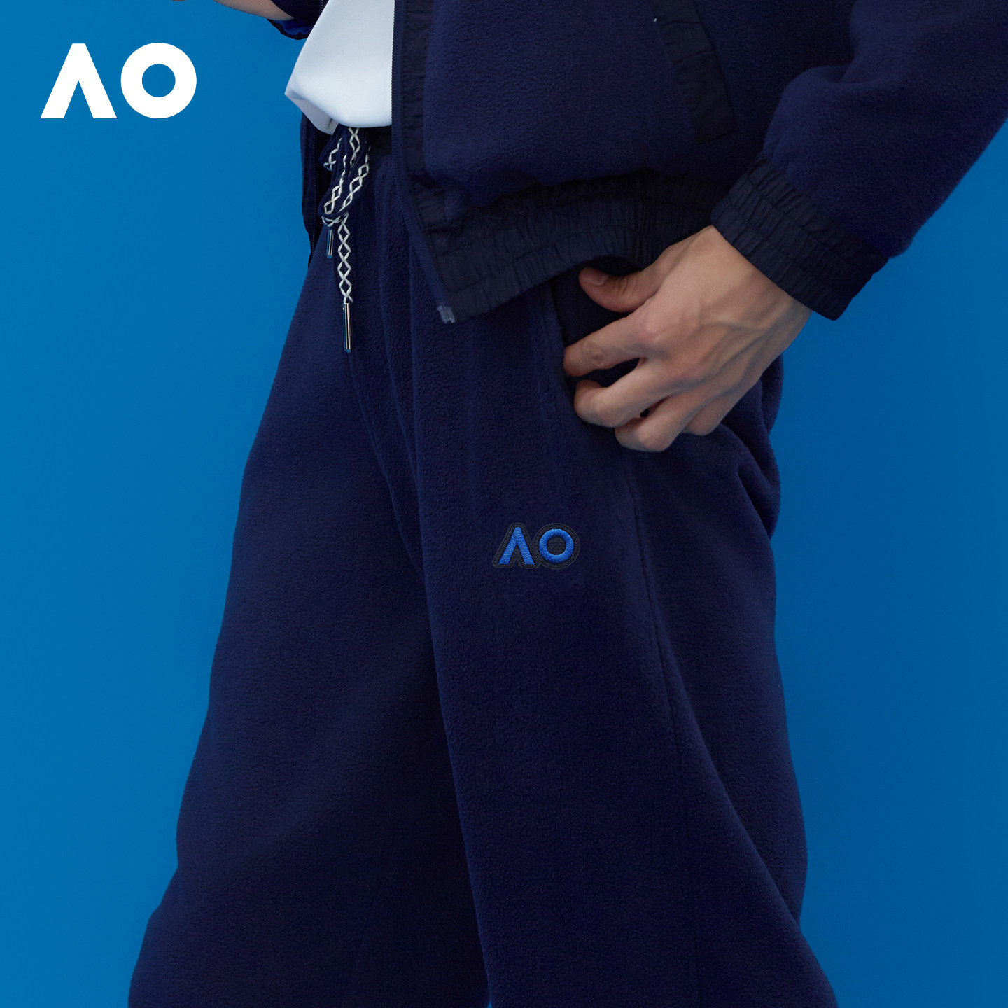 天猫AO澳网秋冬新款百搭摇粒绒运动长裤男束脚休闲裤卫裤男宽网球服