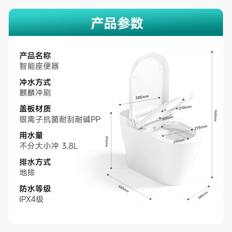 天九牧轻智能马桶坐便器座全自动电小户型尺寸家用带水箱泡沫盾冲洗