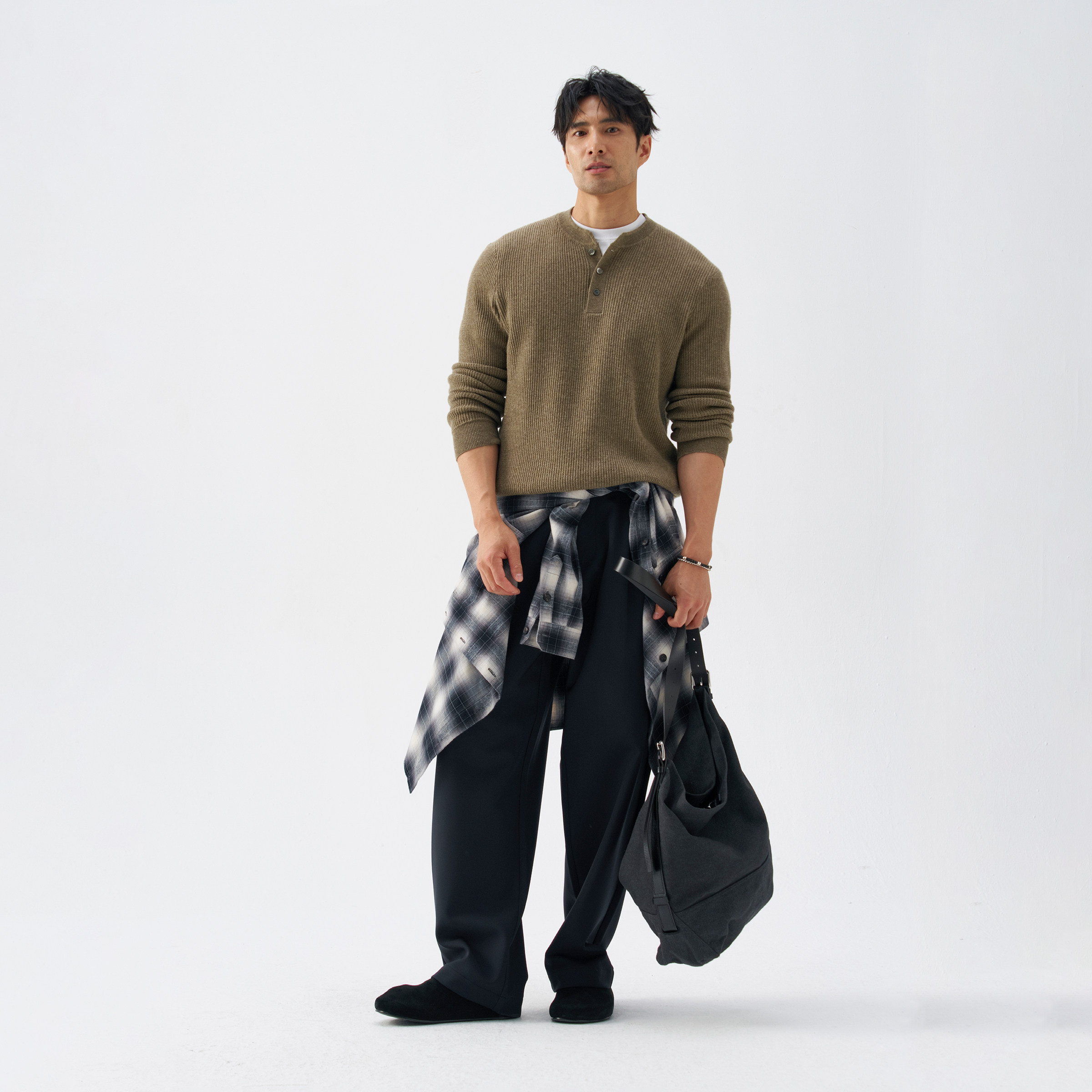 【林秋楠同款】haonanhuang立褶微喇抗皱弹力西裤男女