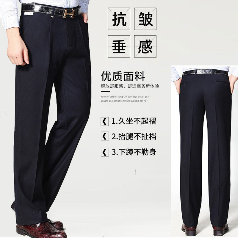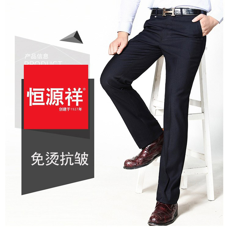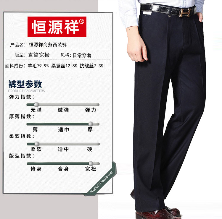 淘宝恒源祥秋冬厚款羊毛西裤高腰深裆男直筒宽松中老年商务正装休闲