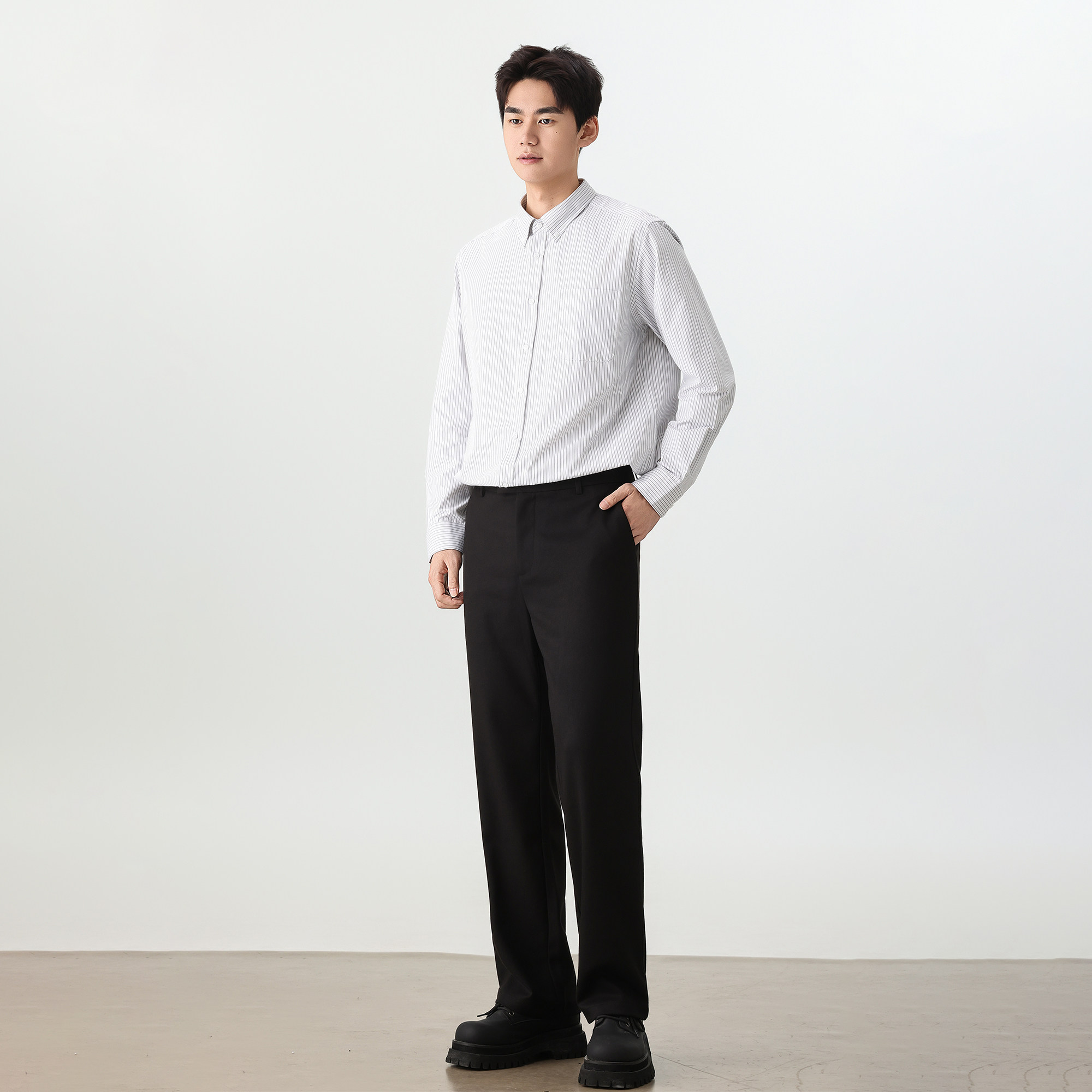 【新品】男士轻商务四季款垂感免烫巴黎扣混纺米色商务休闲西裤男