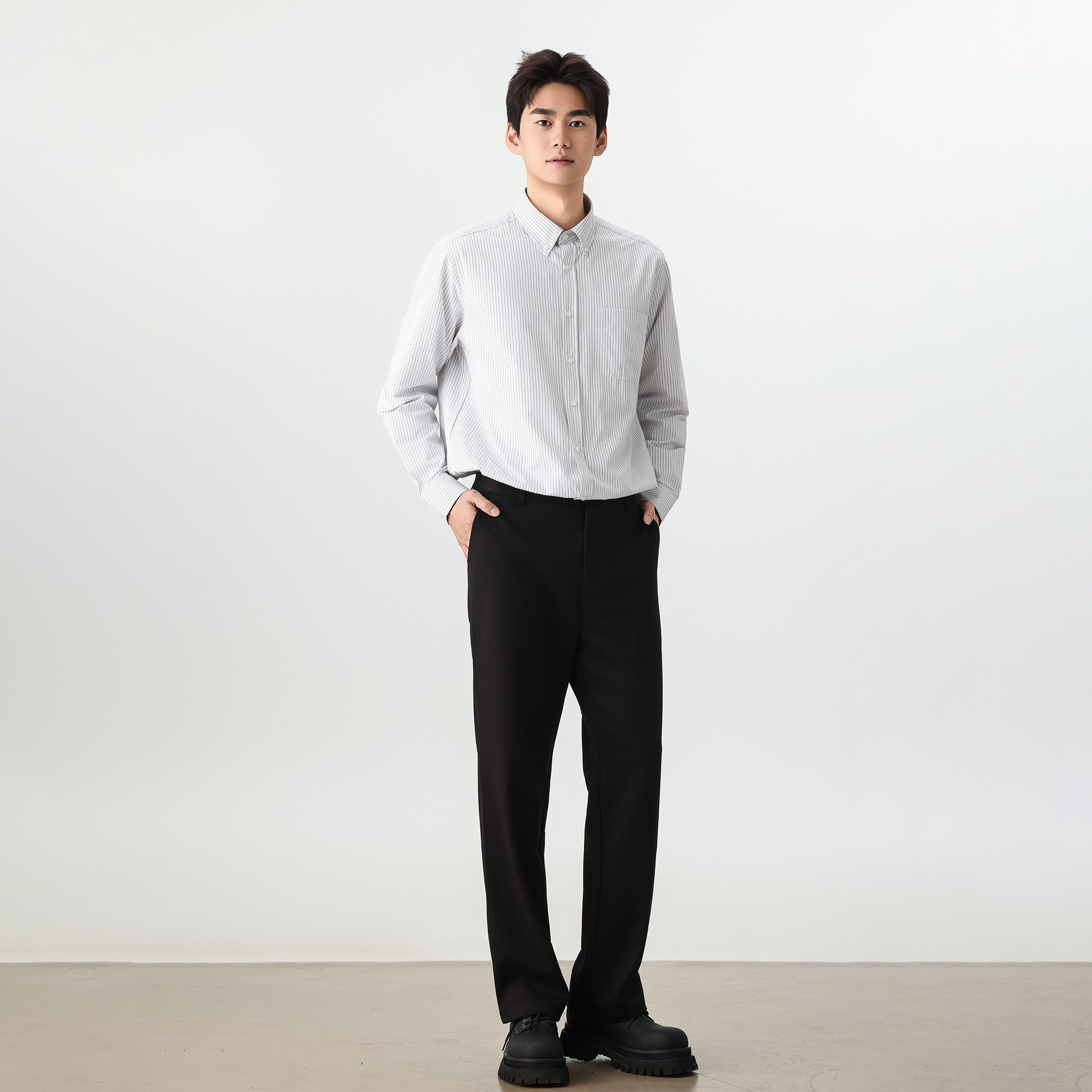 天【新品】男士轻商务四季款垂感免烫巴黎扣混纺米色商务休闲西裤男