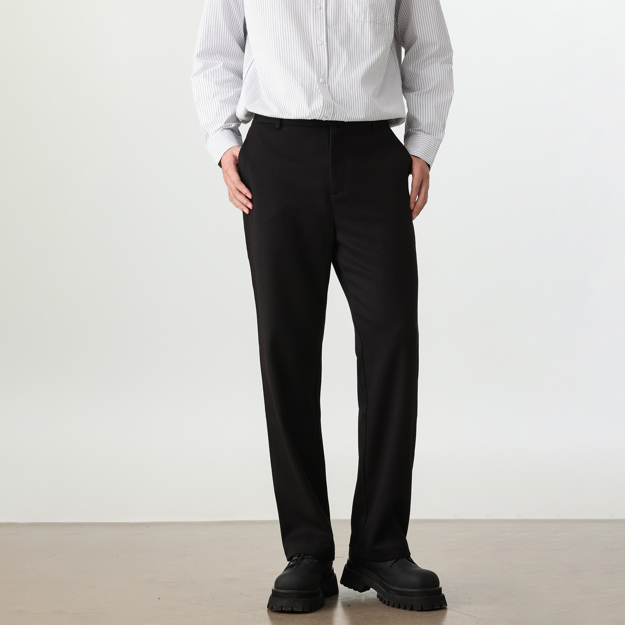 CeTky美式高街cleanfit廓形西裤黑色薄休闲裤男女直筒微喇夏季裤