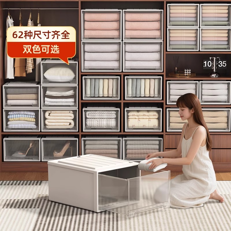 天猫衣物收纳箱抽屉式家用衣服衣柜内衣裤子收纳盒透明整理储物柜