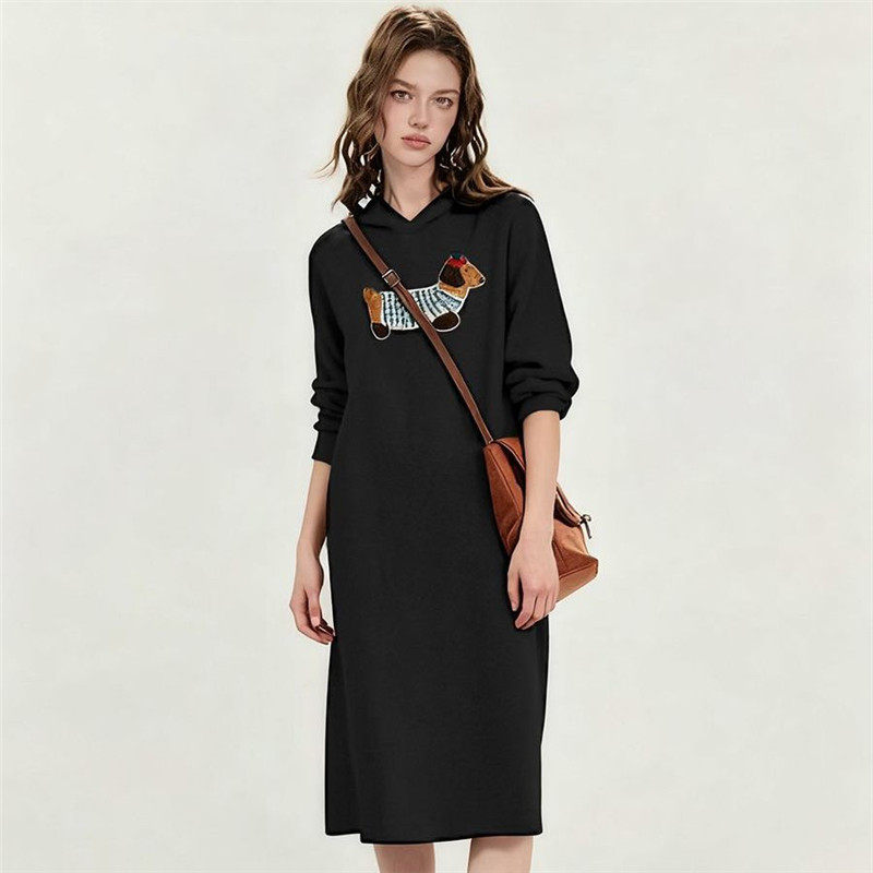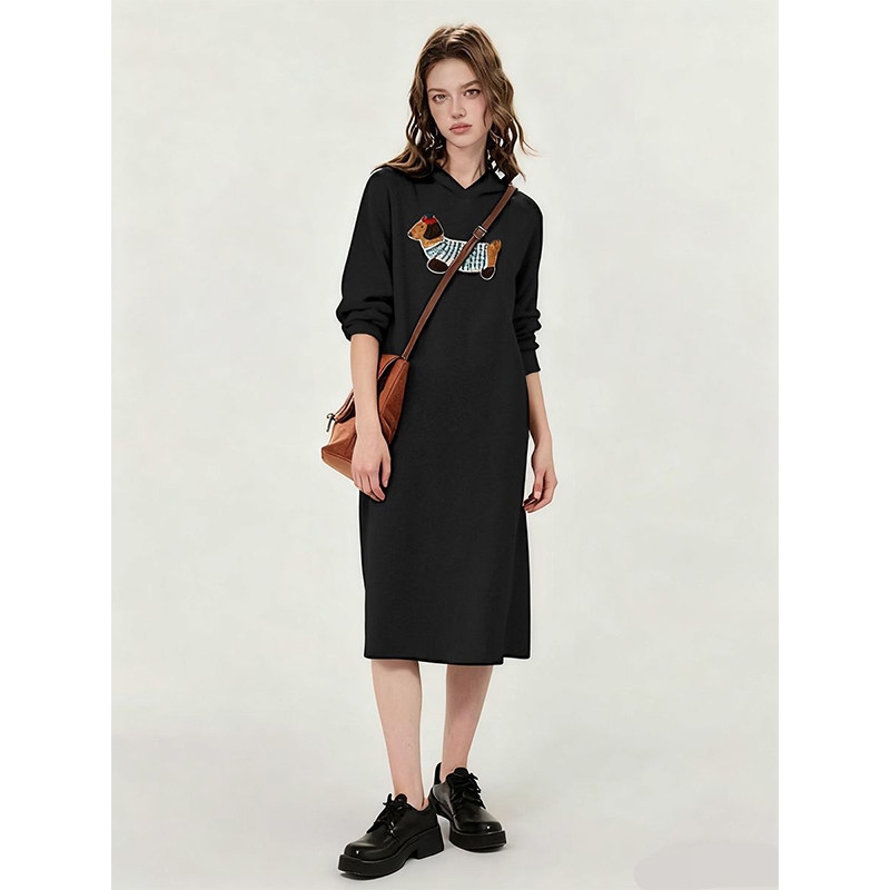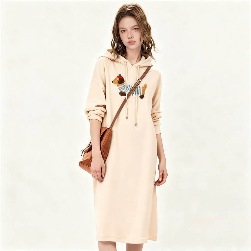 天猫孕妇装过膝中长款纯棉连帽卫衣裙秋冬宽松韩范chic抽绳连帽百搭裙