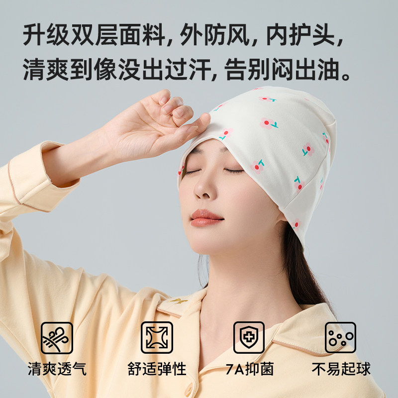 天猫大头围月子帽女4月份产后纯棉薄款孕妇睡觉可戴防风春夏季产妇帽