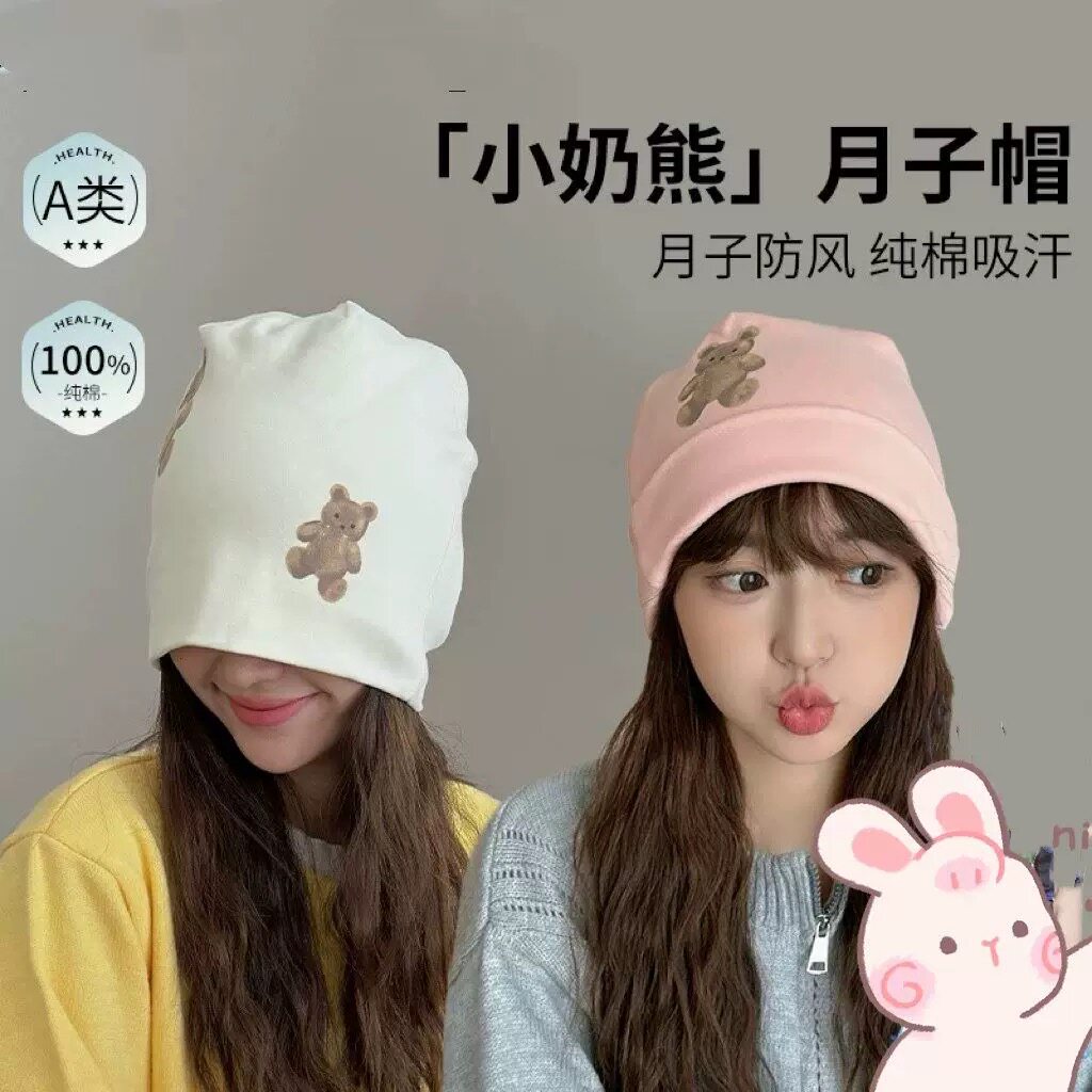 淘春秋季纯棉月子帽孕妇产后防风帽大头围睡觉可戴吸汗保暖透气头巾