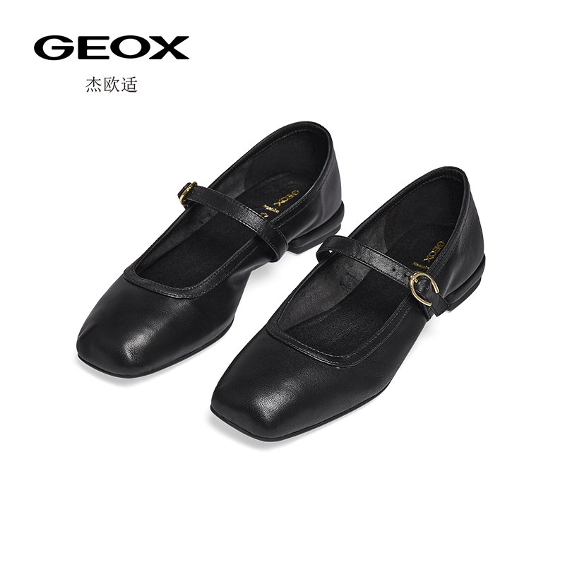天猫GEOX杰欧适2025春夏新款女鞋舒适百搭透气优雅复古风搭扣低跟单鞋